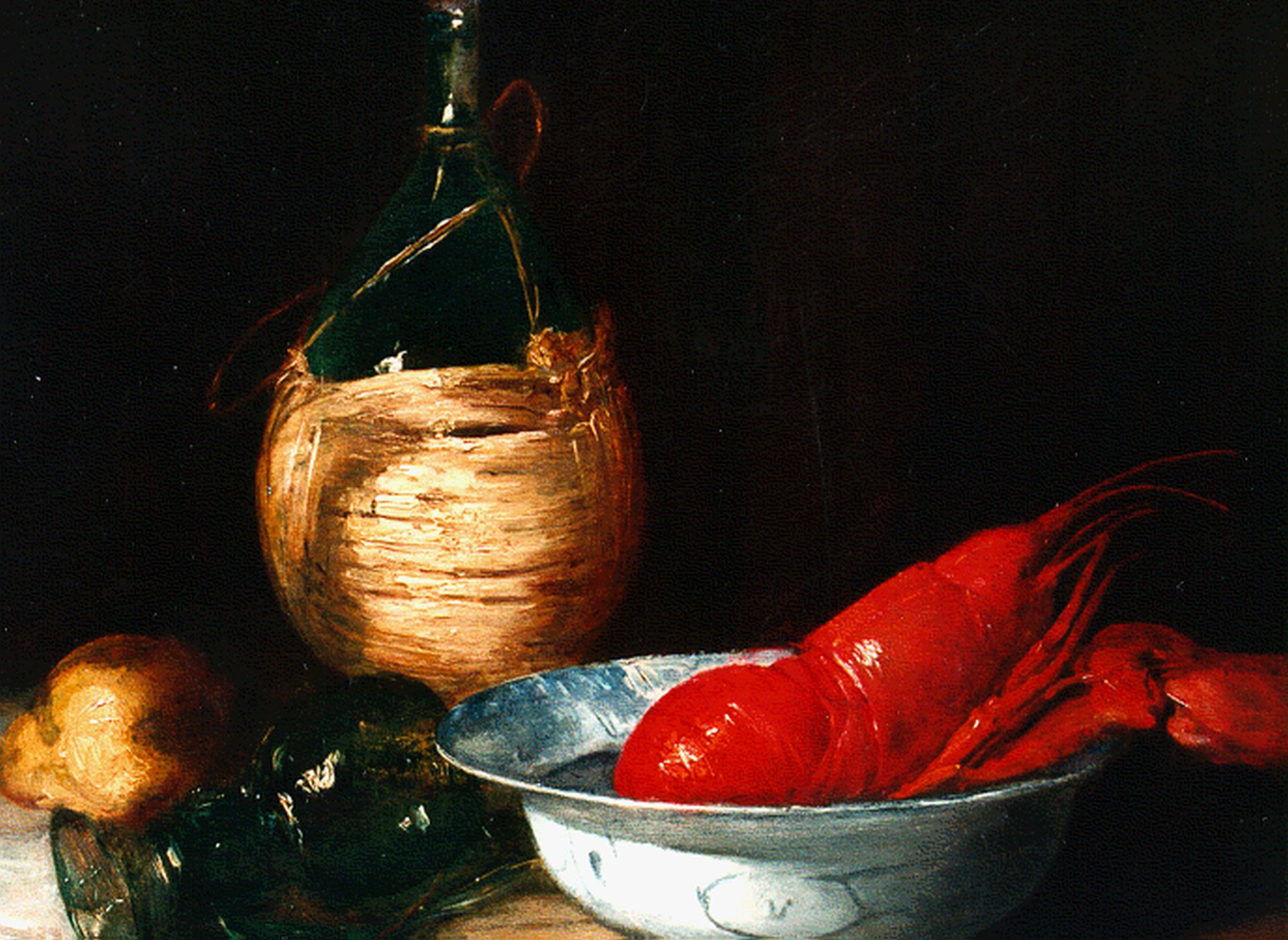 Antoine Vollon Kunstwerk • Gemälde • zuvor zu verkaufen Still life with a lobster and winebottle
