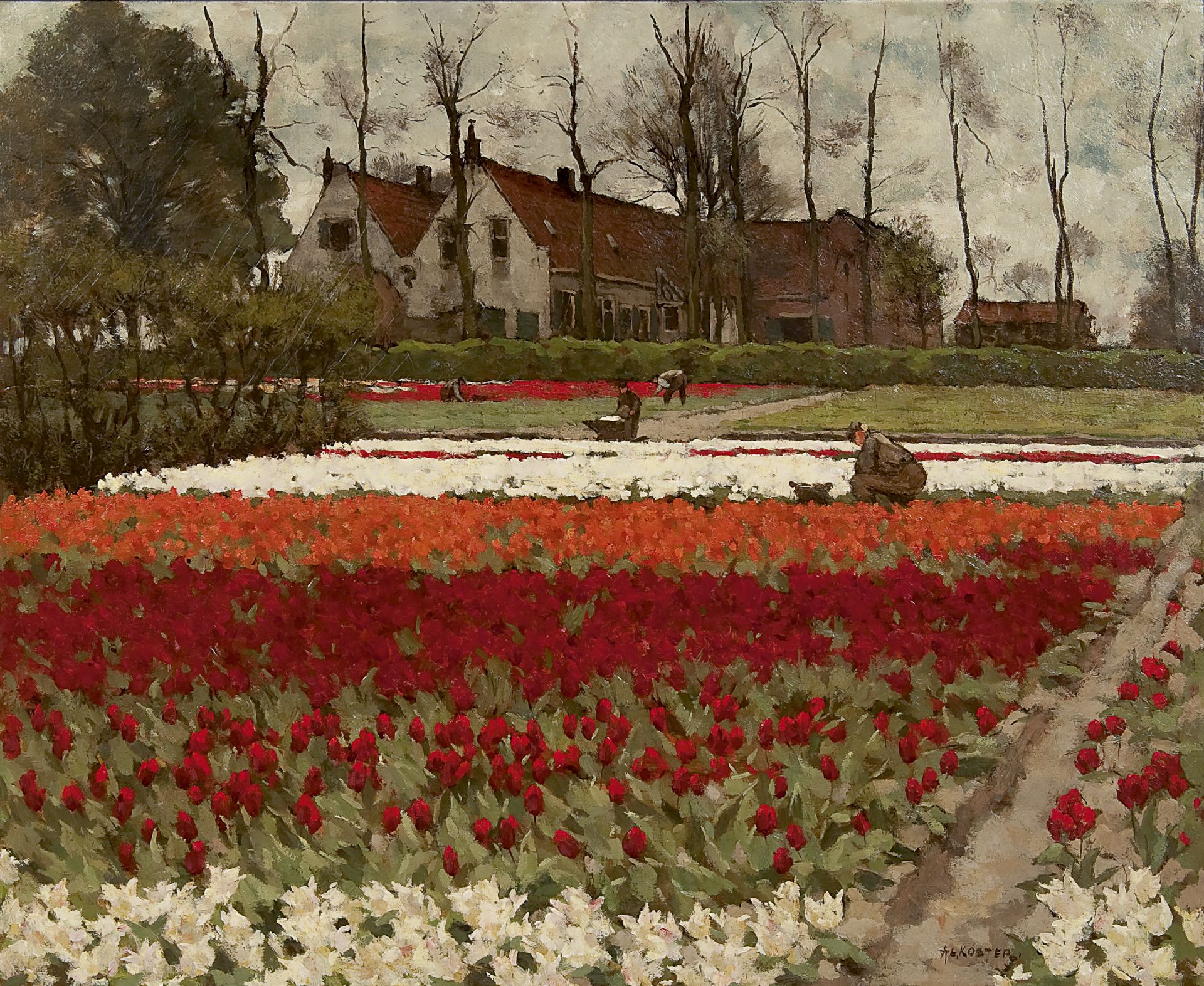 Anton Koster Kunstwerk • Gemälde • zuvor zu verkaufen Hyacinths and tulipfields, Overveen