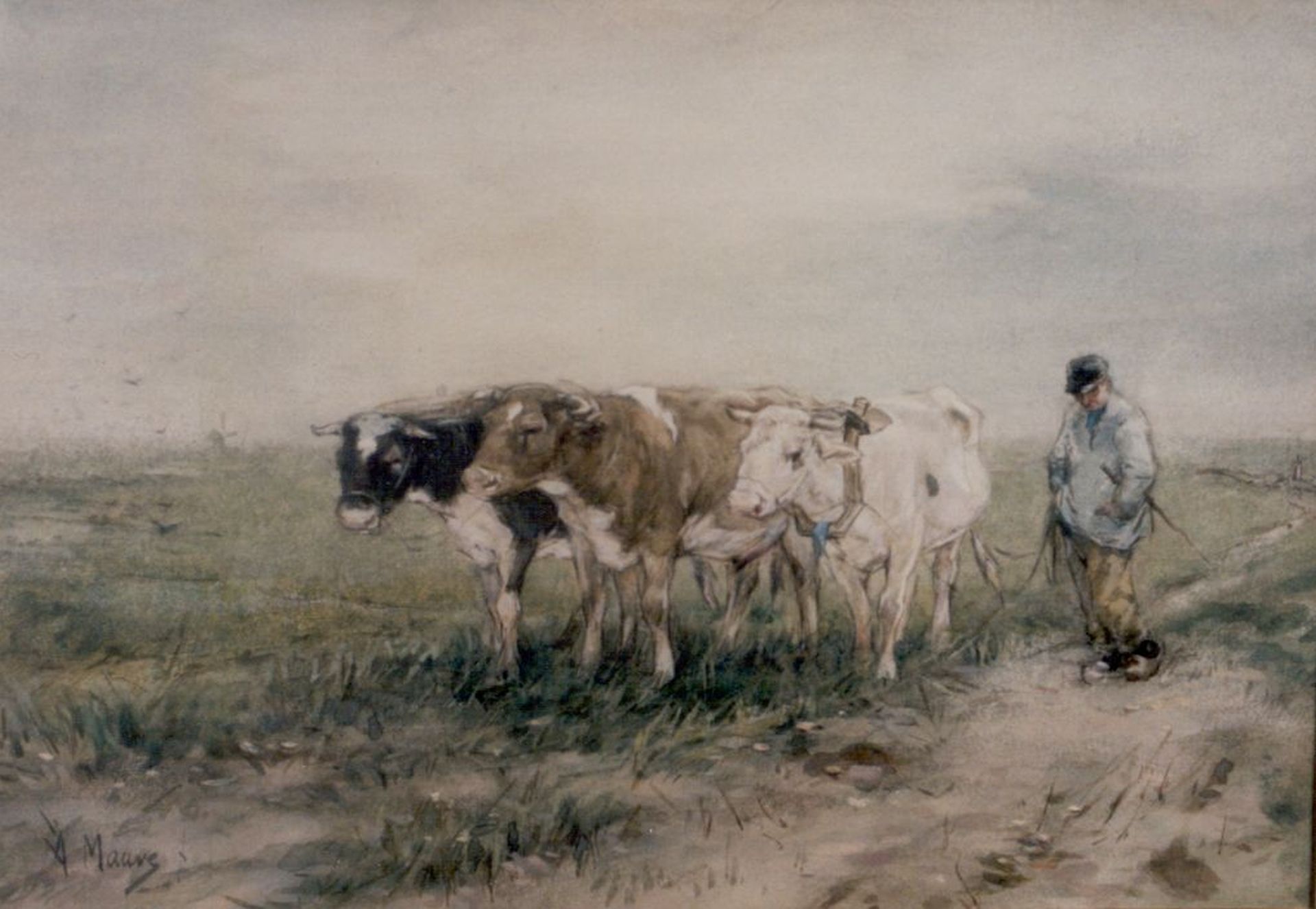 Mauve A.  | Anthonij 'Anton' Mauve, A farmer and oxes, Aquarell auf Papier 22,5 x 32,5 cm, signed l.l.