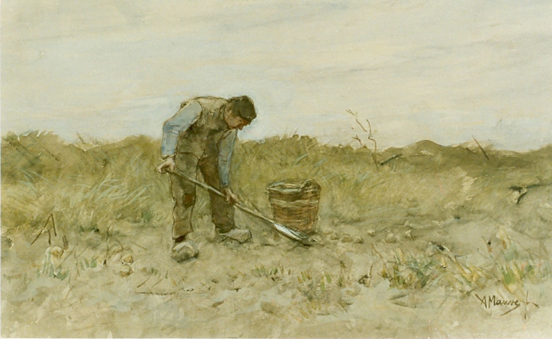 Anton Mauve Kunstwerk • Aquarell • Zeichnung • zuvor zu verkaufen A farmer digging potatoes