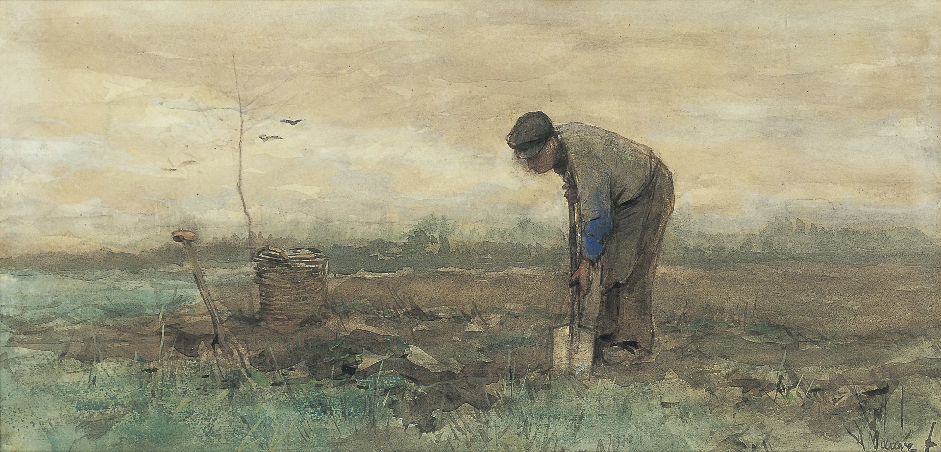 Anton Mauve Kunstwerk • Aquarell • Zeichnung • zuvor zu verkaufen A farmer working on a field
