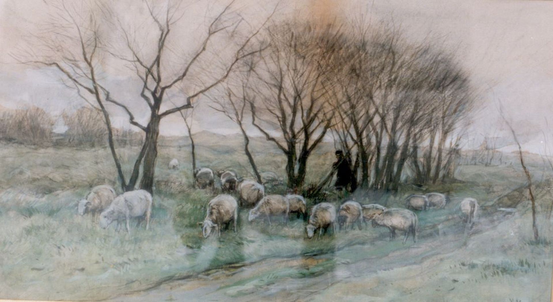 Anton Mauve Kunstwerk • Aquarell • Zeichnung • zuvor zu verkaufen A shepherd and flock
