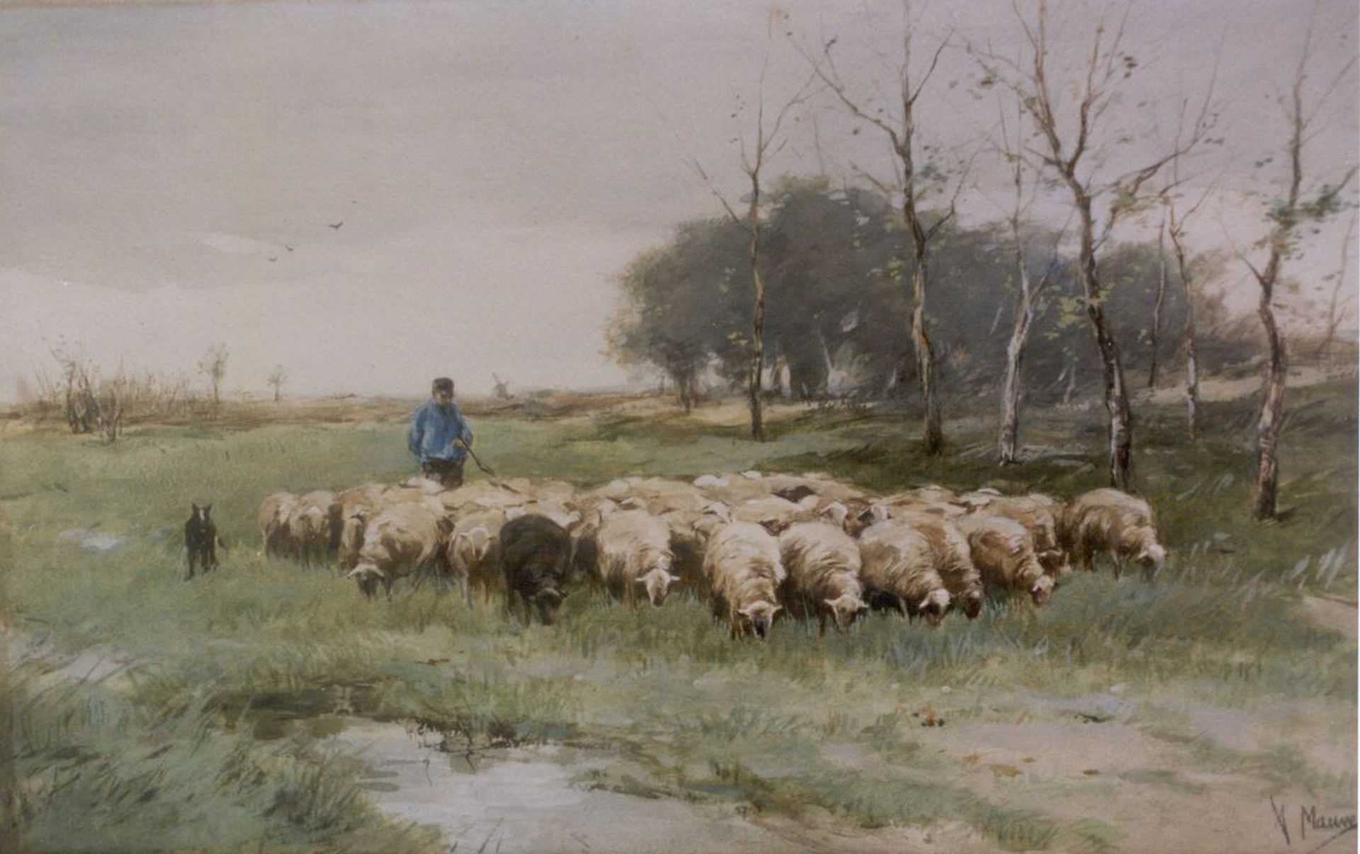 Anton Mauve Kunstwerk • Aquarell • Zeichnung • zuvor zu verkaufen A shepherd with his flock
