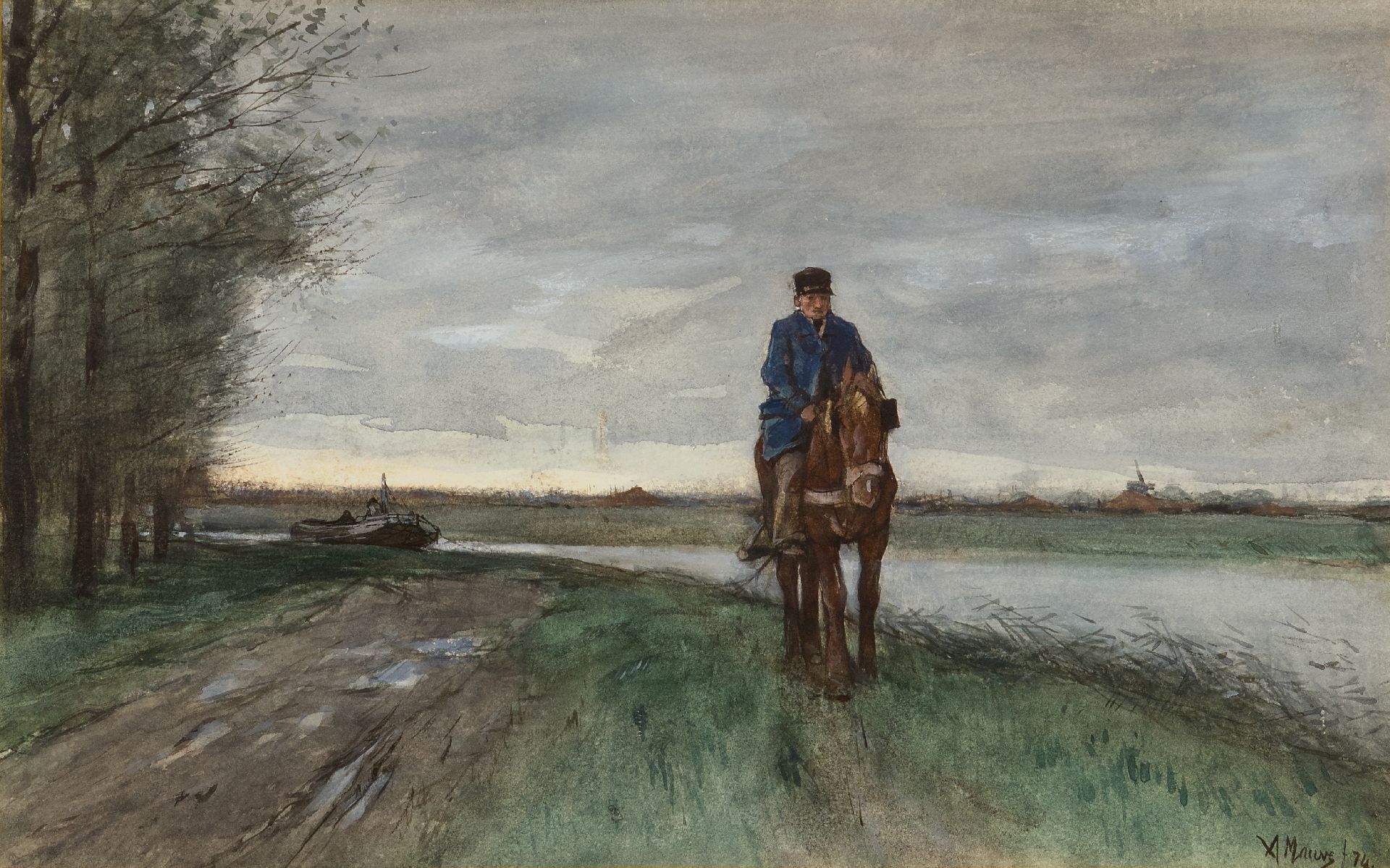 Mauve A.  | Anthonij 'Anton' Mauve, Am Treidelpfad, Aquarell auf Papier 25,5 x 40,9 cm, Unterzeichnet u.r. und datiert '74