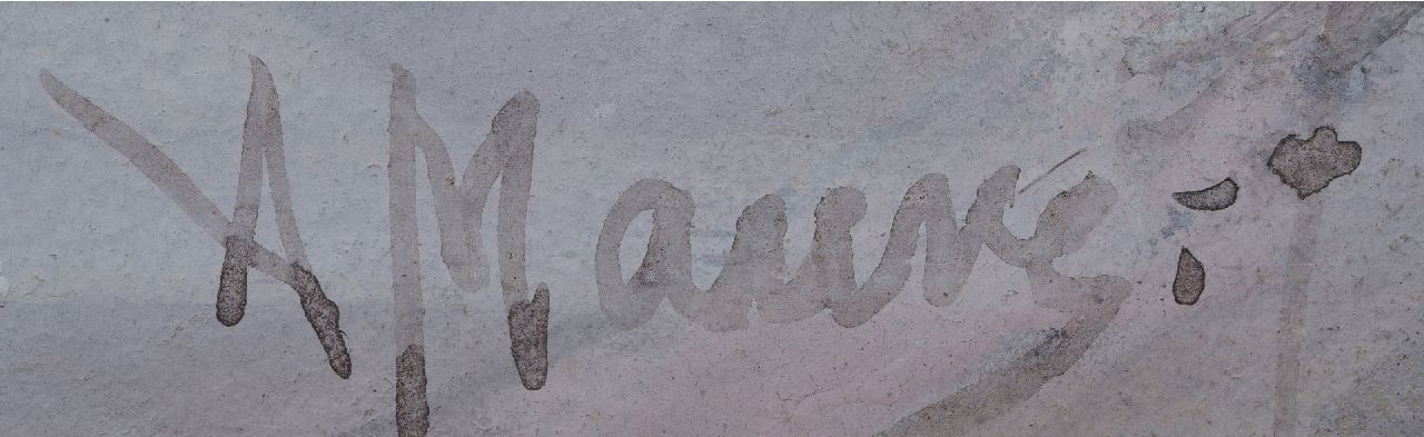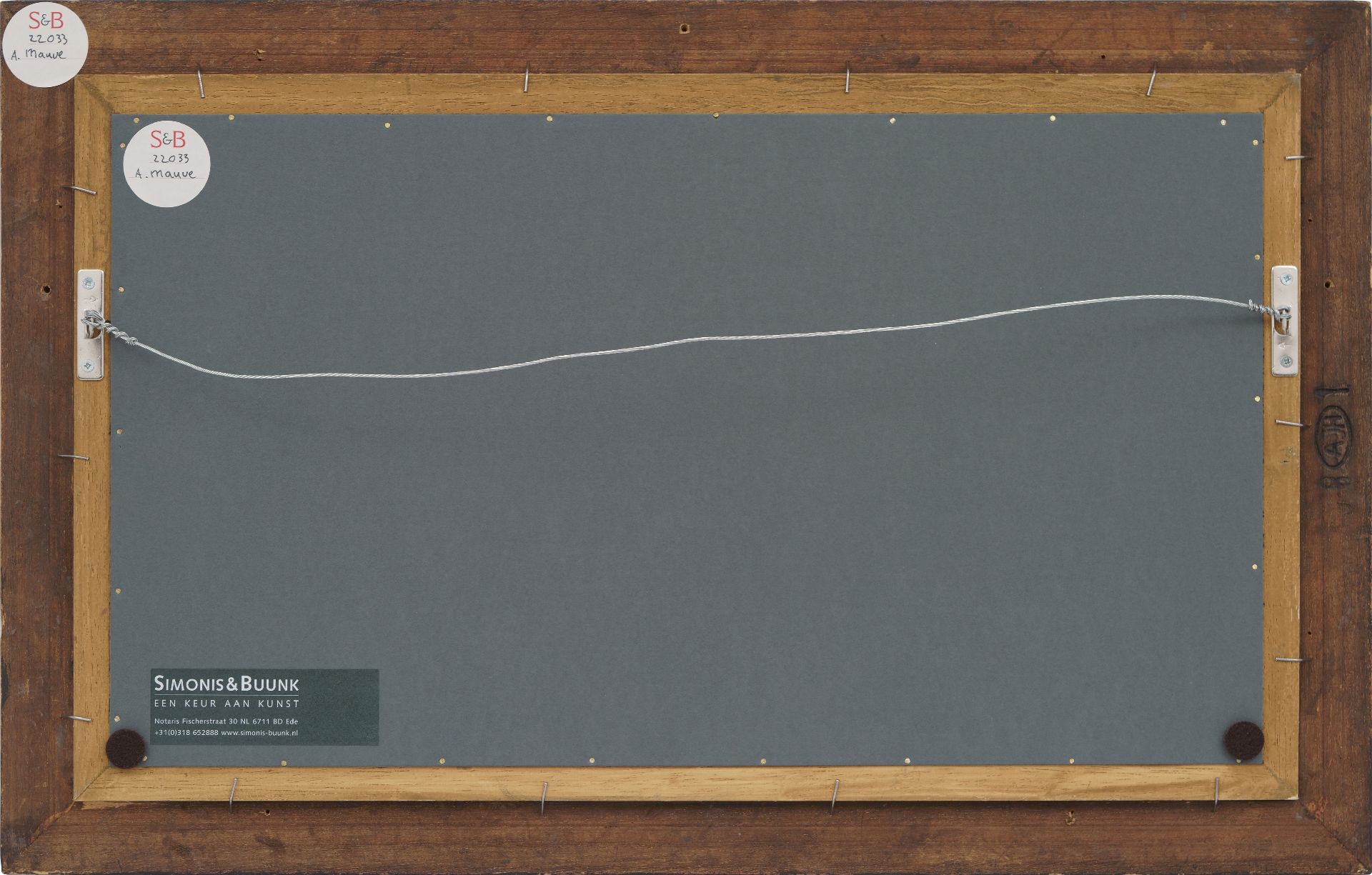 Anton Mauve ist einer der bekanntesten Maler der Haagse School. Er bekam seine Ausbildung bei den Tiermalern P.F.van Os und Wouterus Verschuur. Er arbeitete einige Zeit in Oosterbeek mit P.J.C. Gabriel. Er kombinierte Landschaften und Tiere in seinen Gemälden. Nach einigen Umherschweifungen liess er sich 1871 im Haag nieder. Nachher zog er nach Laren, wo er namentlich die Heide mit wolligen Schafsherden in silbergrauen Tönen der verfliessenden Landschaft wiedergab. Eine seiner geliebtesten Stellen war ein gerade ausserhalb Laren gelegenes Stück Ödland, später Mauvezand genannt.