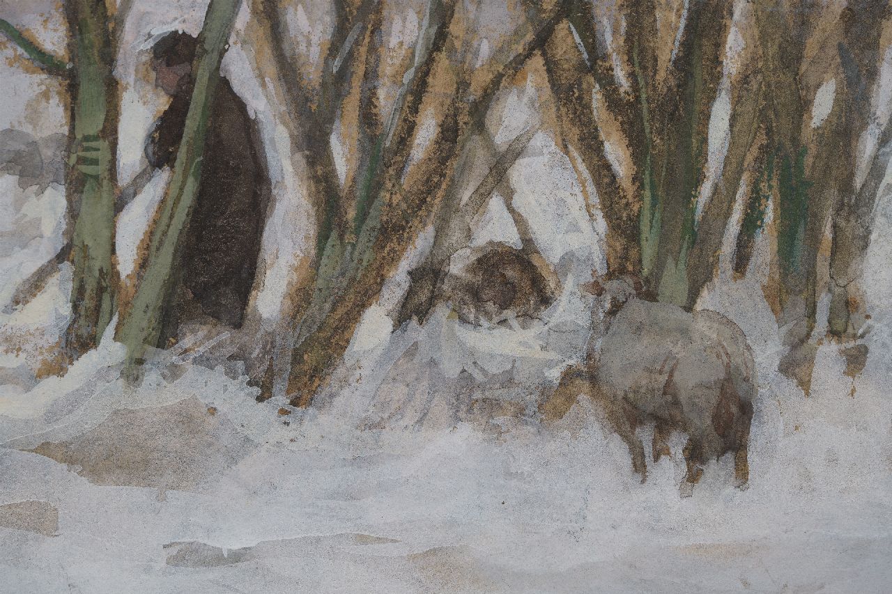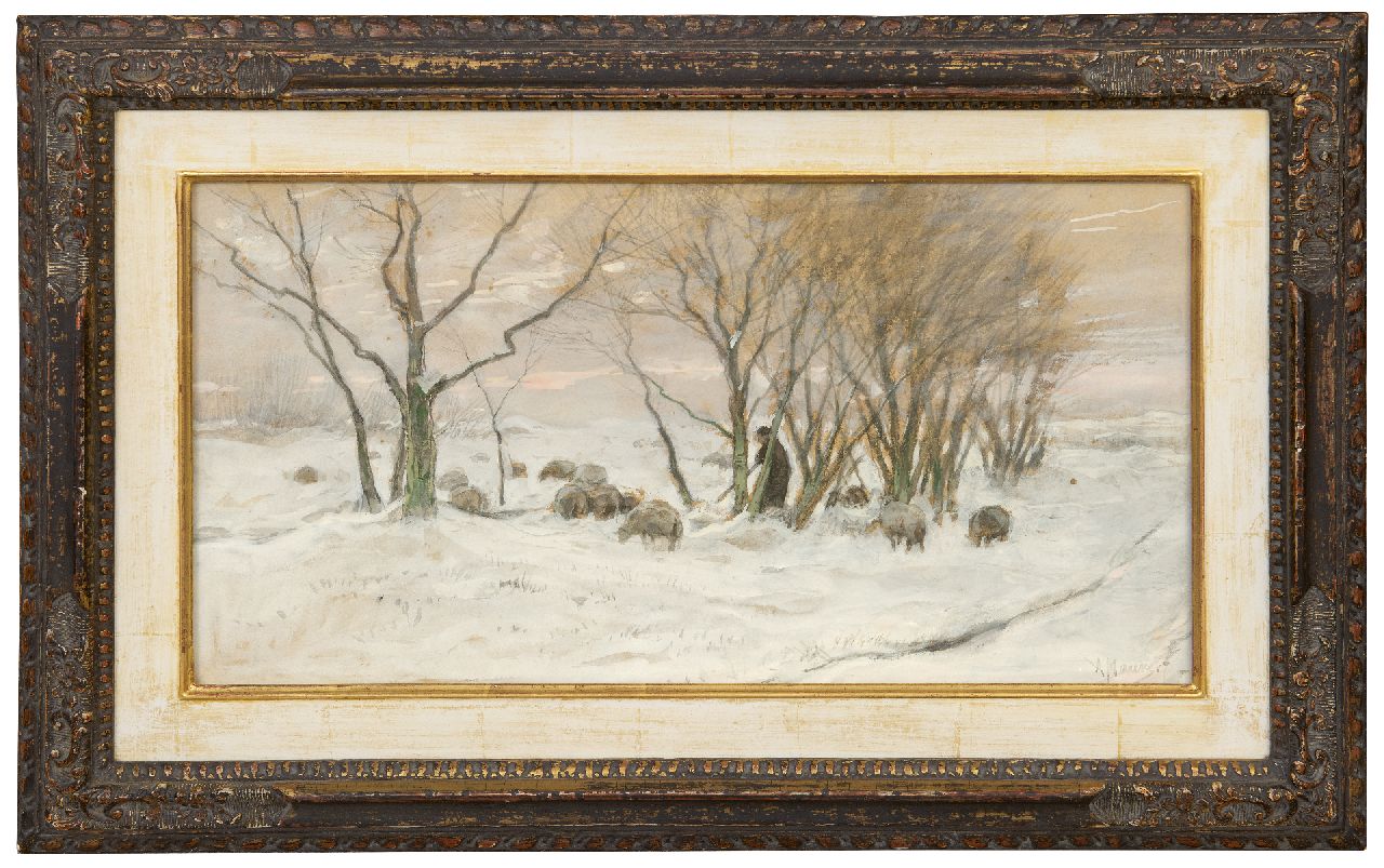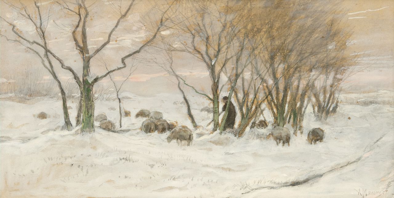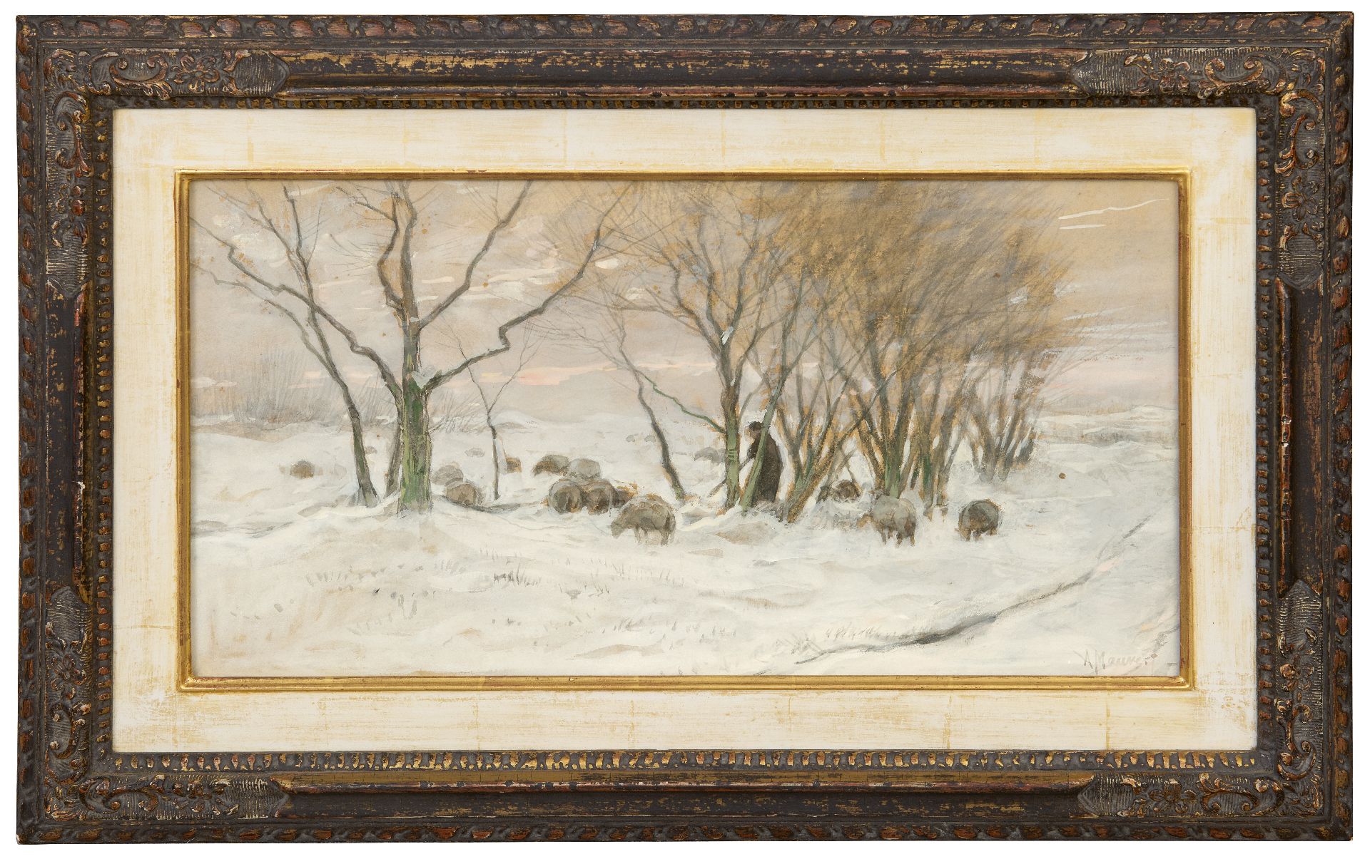 Anton Mauve Kunstwerk • Aquarell • Zeichnung • zu verkaufen Hirte und Schafe im Schnee