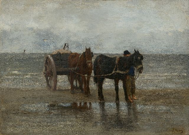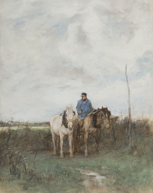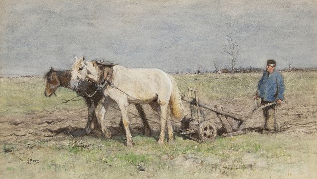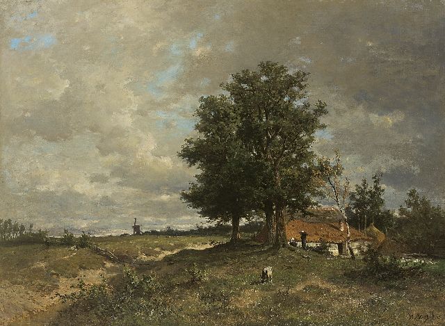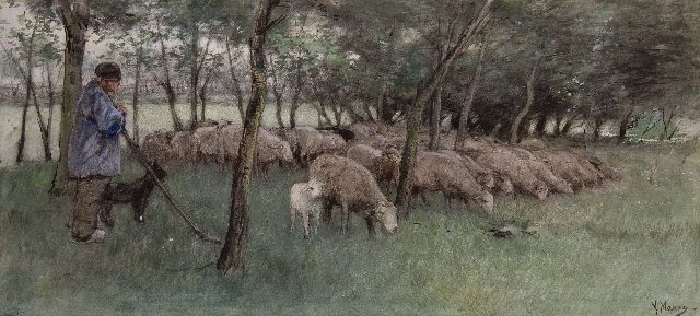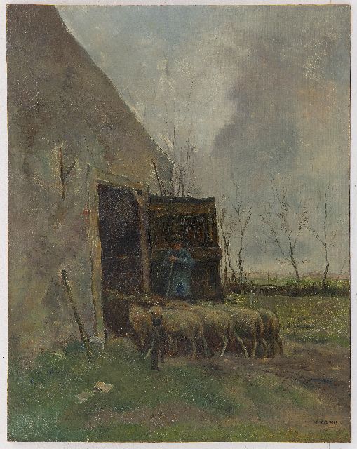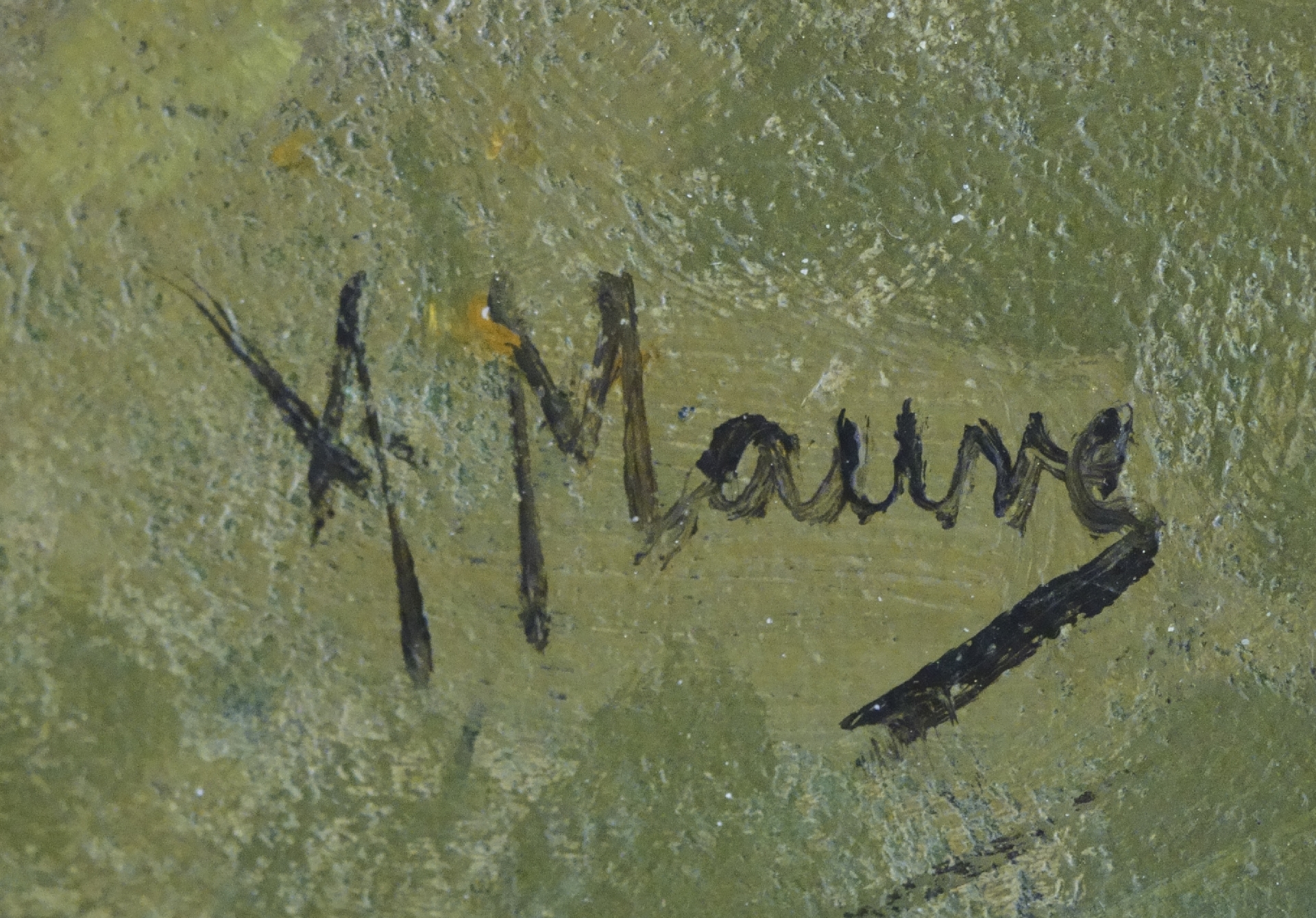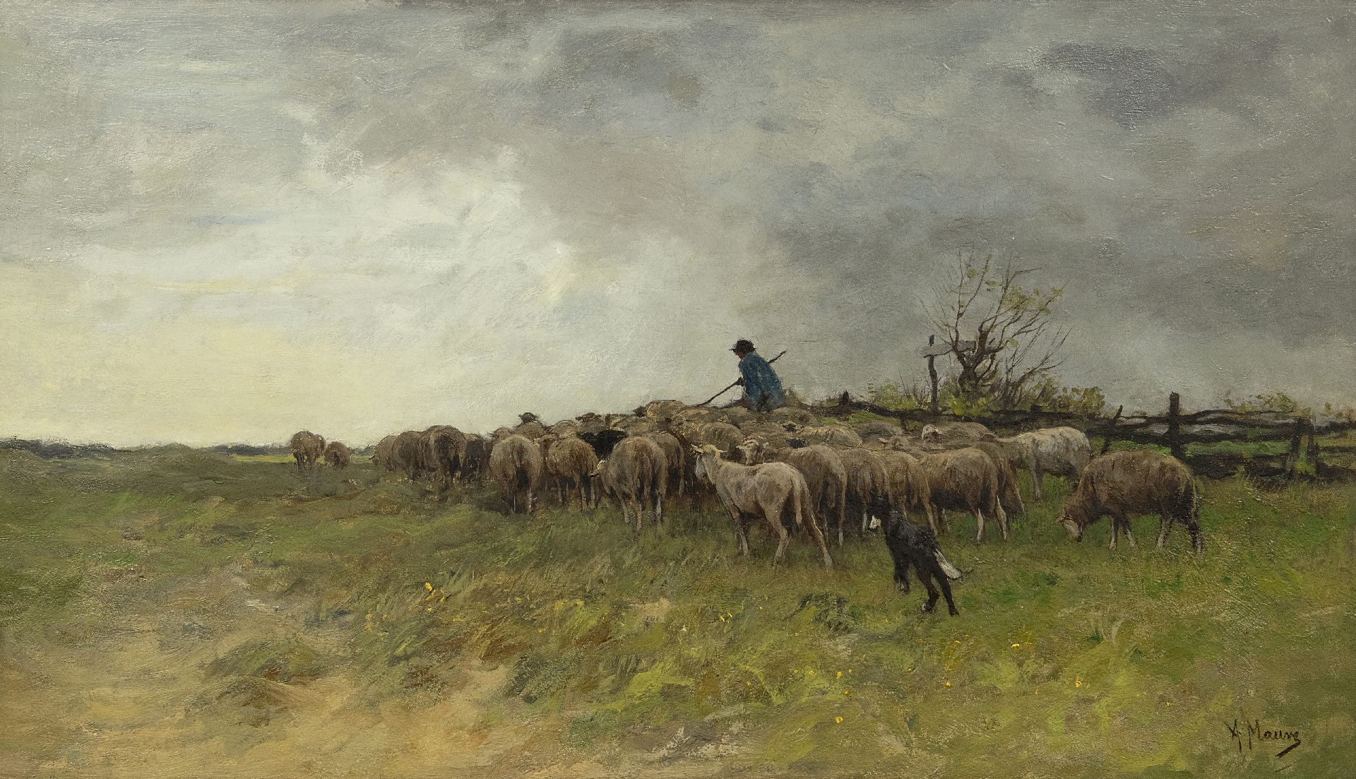 Anton Mauve ist einer der bekanntesten Maler der Haagse School. Er bekam seine Ausbildung bei den Tiermalern P.F.van Os und Wouterus Verschuur. Er arbeitete einige Zeit in Oosterbeek mit P.J.C. Gabriel. Er kombinierte Landschaften und Tiere in seinen Gemälden. Nach einigen Umherschweifungen liess er sich 1871 im Haag nieder. Nachher zog er nach Laren, wo er namentlich die Heide mit wolligen Schafsherden in silbergrauen Tönen der verfliessenden Landschaft wiedergab. Eine seiner geliebtesten Stellen war ein gerade ausserhalb Laren gelegenes Stück Ödland, später Mauvezand genannt.