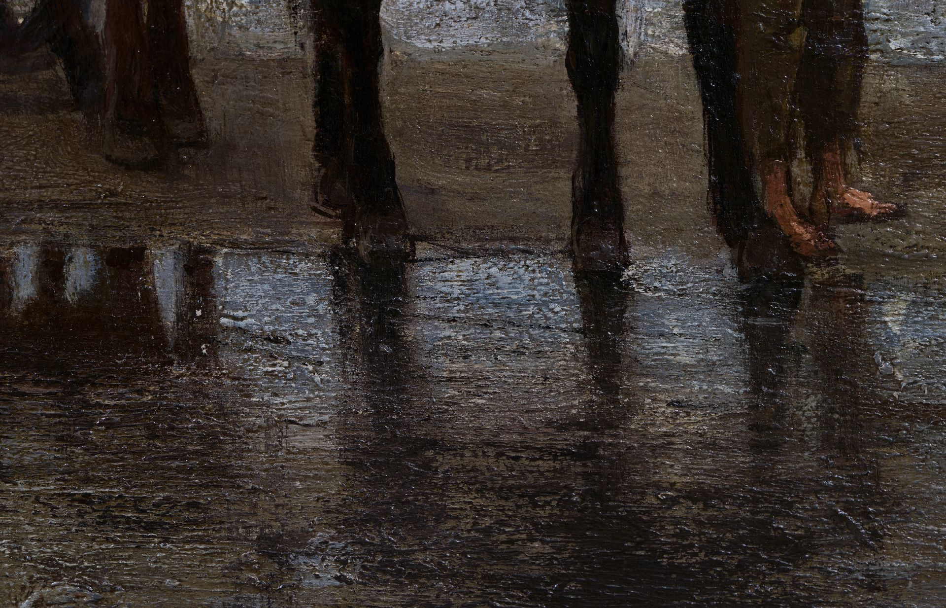 Anton Mauve ist einer der bekanntesten Maler der Haagse School. Er bekam seine Ausbildung bei den Tiermalern P.F.van Os und Wouterus Verschuur. Er arbeitete einige Zeit in Oosterbeek mit P.J.C. Gabriel. Er kombinierte Landschaften und Tiere in seinen Gemälden. Nach einigen Umherschweifungen liess er sich 1871 im Haag nieder. Nachher zog er nach Laren, wo er namentlich die Heide mit wolligen Schafsherden in silbergrauen Tönen der verfliessenden Landschaft wiedergab. Eine seiner geliebtesten Stellen war ein gerade ausserhalb Laren gelegenes Stück Ödland, später Mauvezand genannt.