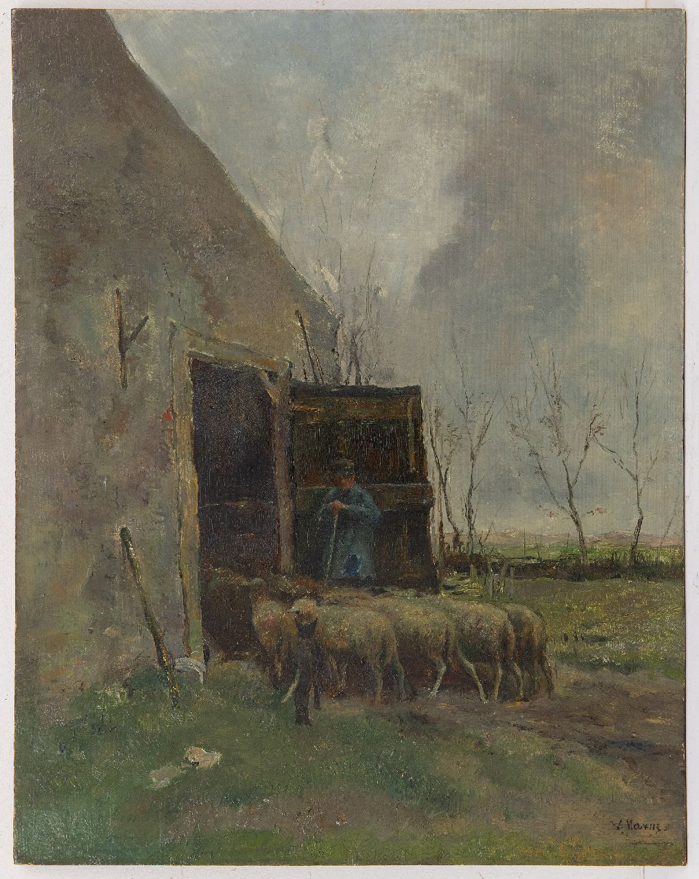 Anton Mauve Kunstwerk • Gemälde • zu verkaufen Schafe und Hirte am Stall