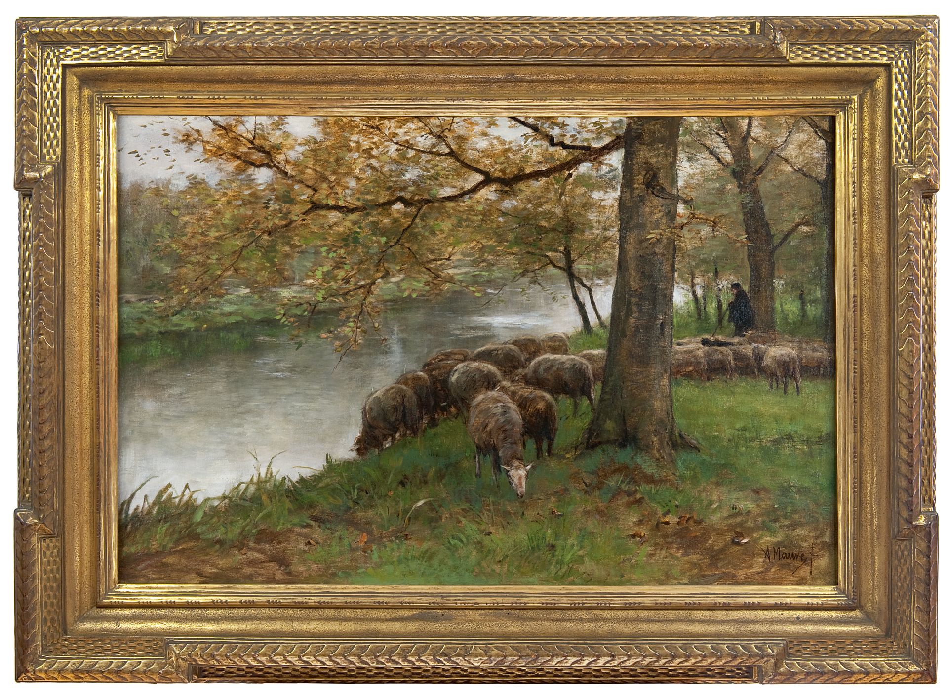 Anton Mauve Kunstwerk • Gemälde • zuvor zu verkaufen Trinkende Schafe am Fluss