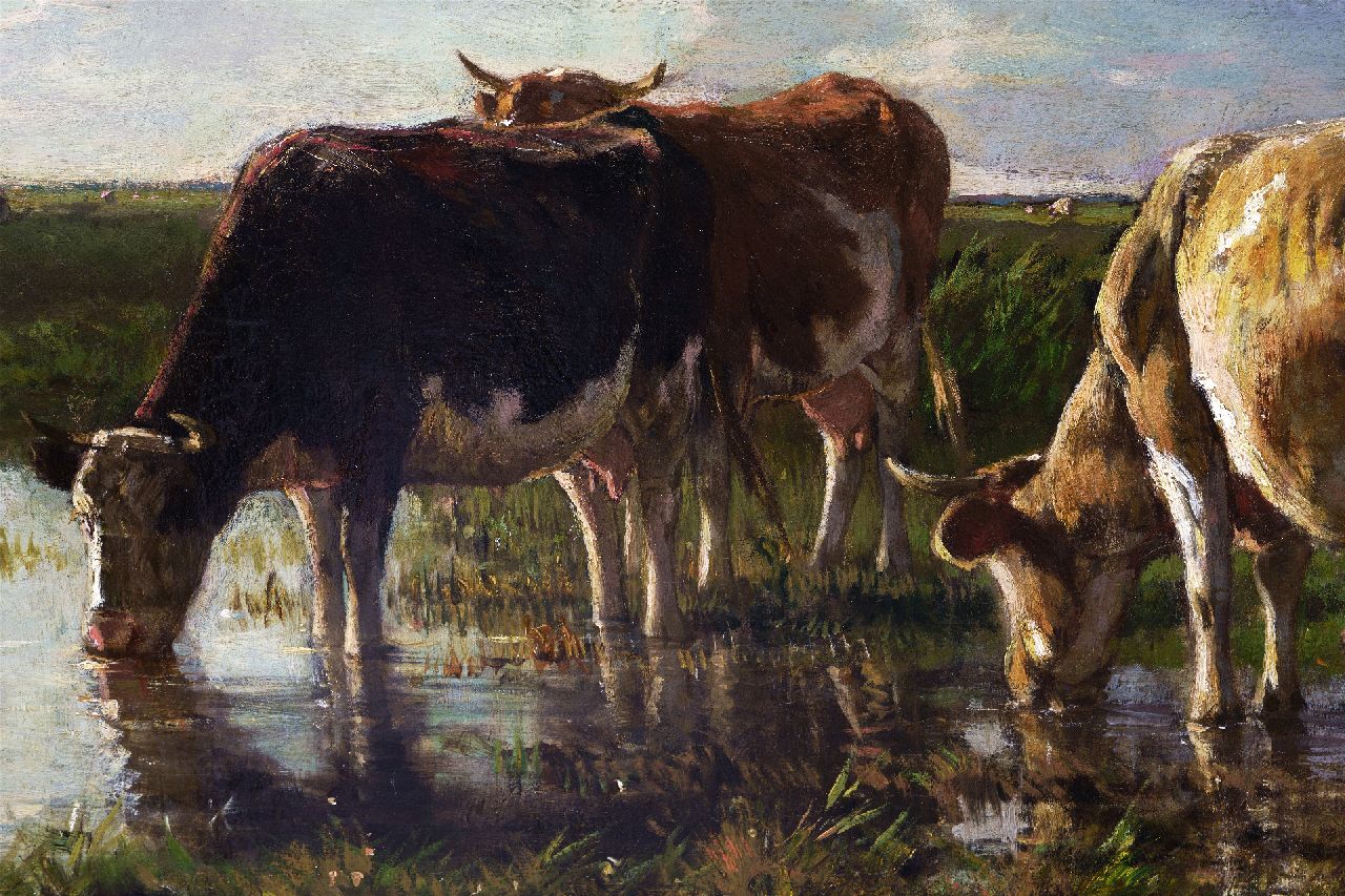 Anton Mauve Kunstwerk • Gemälde • zuvor zu verkaufen Trinkendes Vieh entlang des Flusses