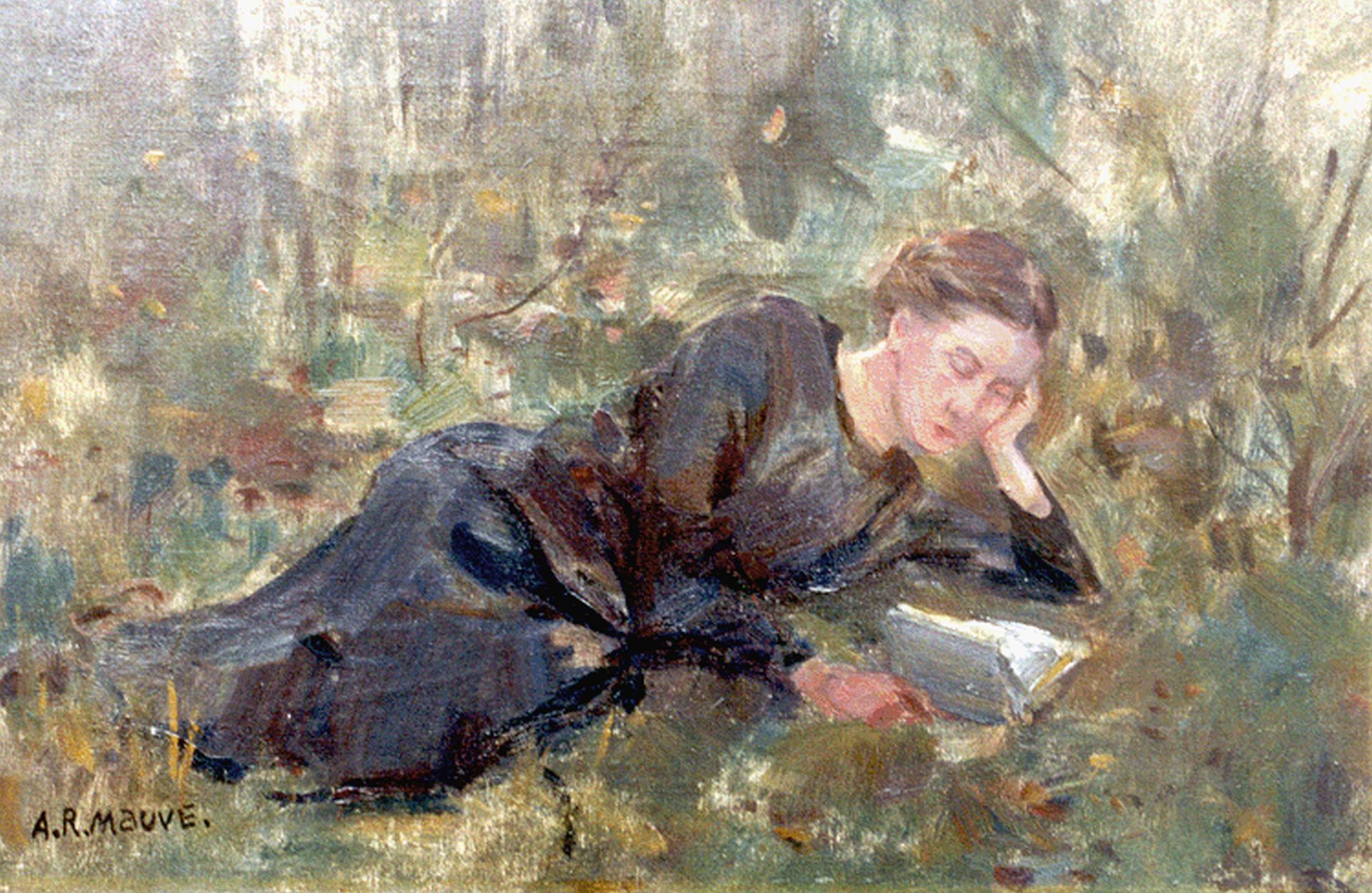 Anton Mauve jr. Kunstwerk • Gemälde • zuvor zu verkaufen Mrs. Mauve-Langhout reading a book