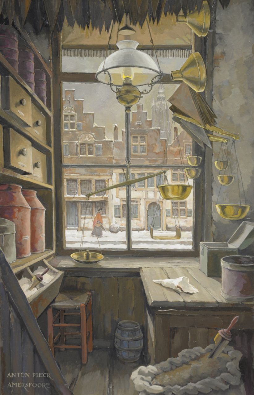 Anton Pieck Kunstwerk • Gemälde • zuvor zu verkaufen Grocery store on 't Havik, Amersfoort