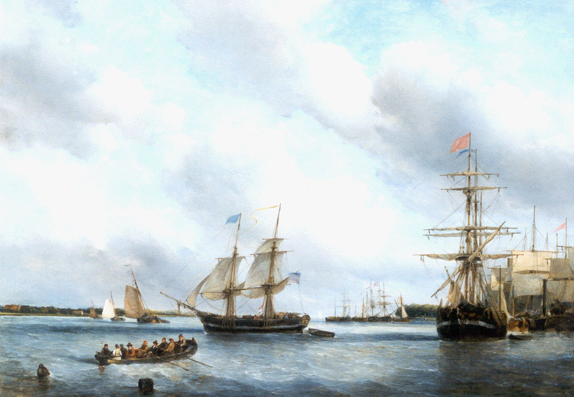 Antonie Waldorp Kunstwerk • Gemälde • zuvor zu verkaufen Shipping on the river Maas