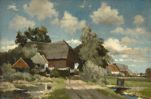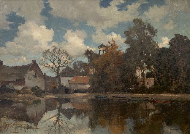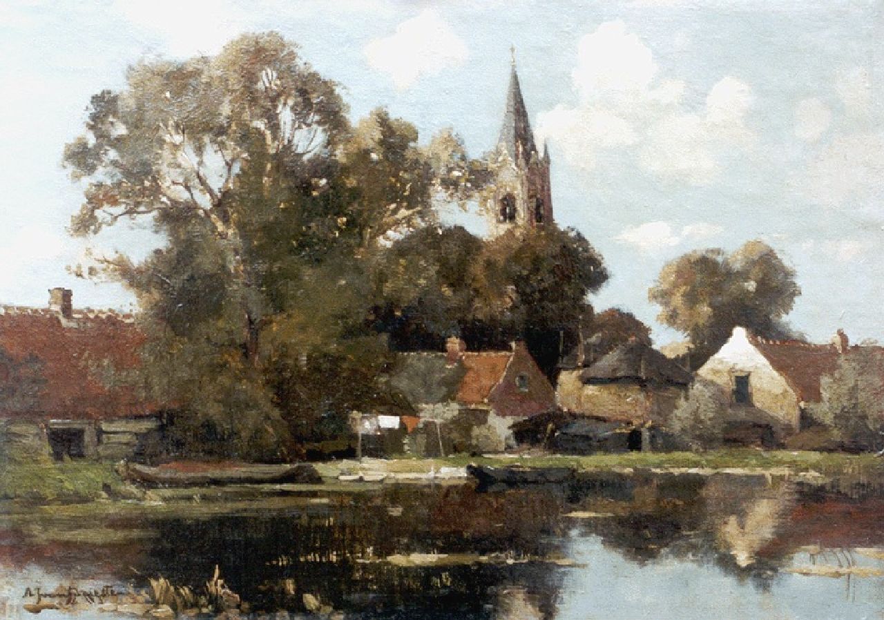 Arend Jan van Driesten Kunstwerk • Gemälde • zuvor zu verkaufen A view of Voorschoten, De Vliet in the foreground