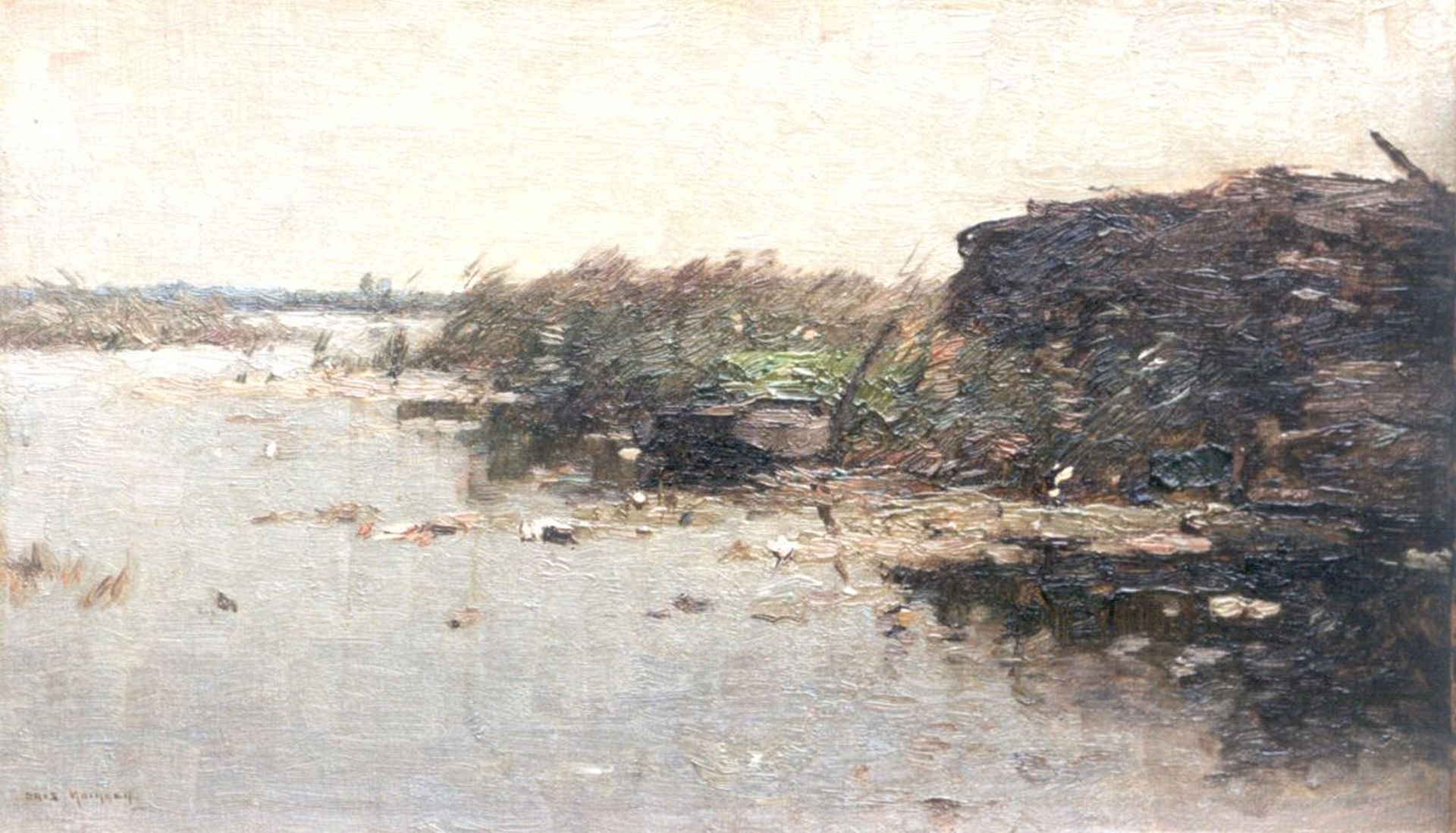 Aris Knikker | An der Fahrt entlang, Öl auf Leinwand auf Holz, 21,5 x 16,6 cm, Unterzeichnet vorher mit Unterschrift 'J.H. Weissenbruch'