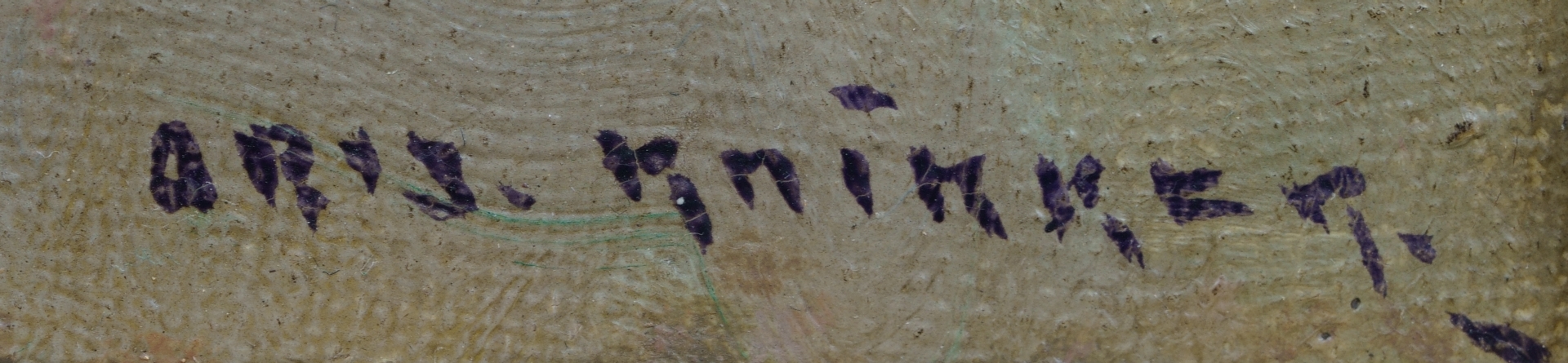 Aris Knikker erhielt seine Ausbildung an der Akademie in Den Haag und lebte fast sein ganzes Leben in der Königsstadt. Seine künstlerische Laufbahn begann er als Töpfermaler bei Rozenburg, danach wechselte er zur freien Malerei. Seine Vorliebe galt dem Malen stimmungsvoller Wasserlandschaften, Höfe und Ausblicke im Stil der Haager Schule, wie es später auch sein Bruder und sein Cousin taten. Seine Arbeit zeigte eine Atmosphäre, die an die Arbeit von J.H. erinnerte. Weißenbruch. Viele der früheren Arbeiten von Aris Knikker wurden daher von diesem Haager Gelehrten zu Werken verarbeitet.