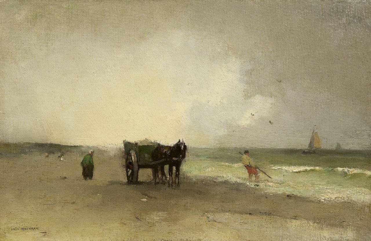 Knikker A.  | Aris Knikker, Gathering shells, Öl auf Holz 27,7 x 42,6 cm, signed l.l.