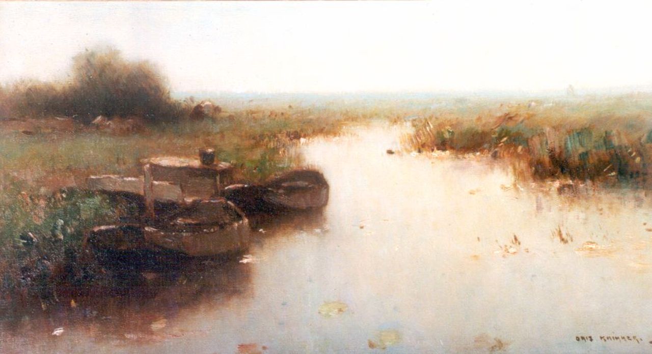 Aris Knikker Kunstwerk • Gemälde • zuvor zu verkaufen Moored barges in a polder landscape