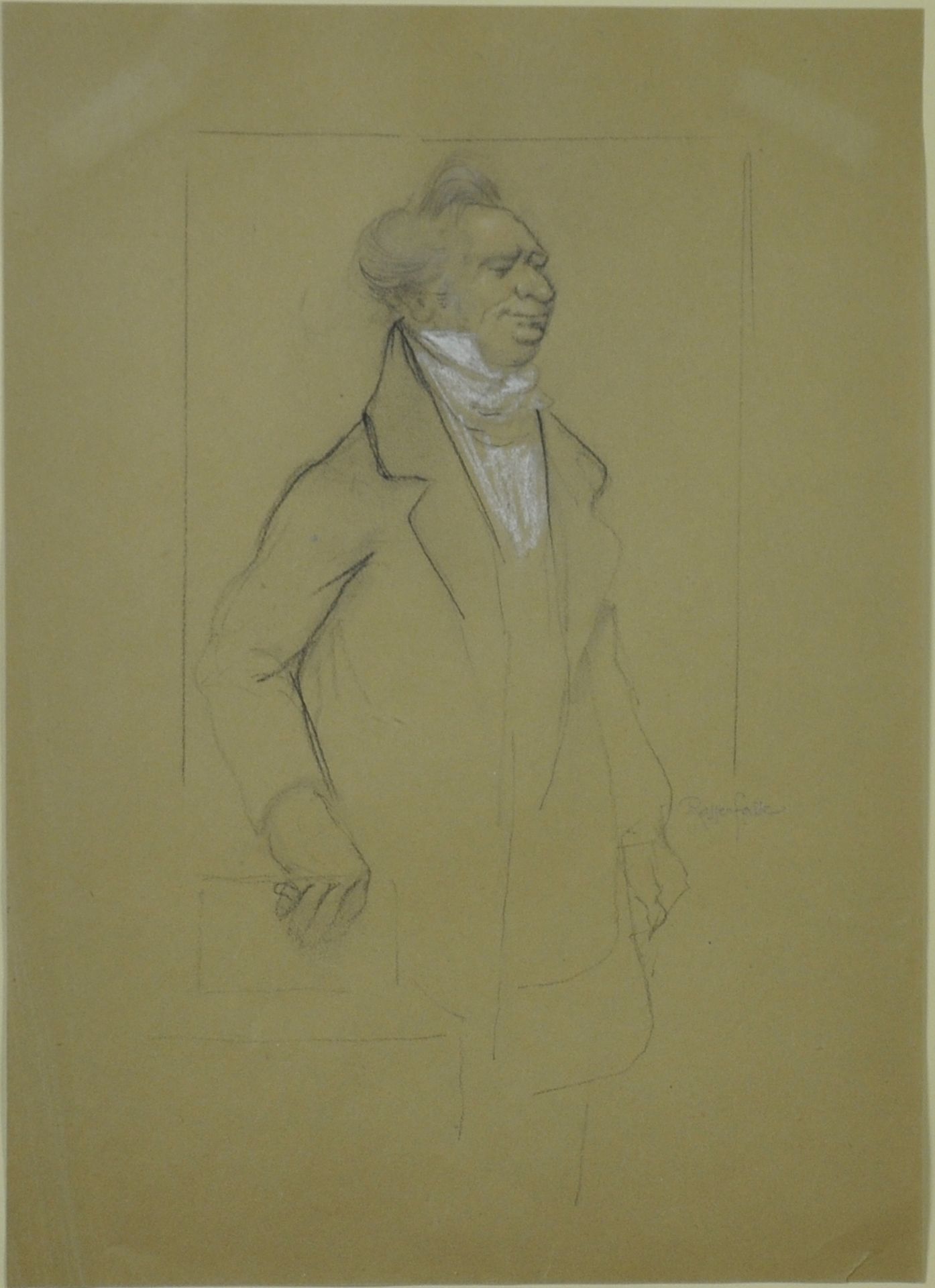 Armand Rassenfosse Kunstwerk • Aquarell • Zeichnung • zu verkaufen Ein Herr geht aus