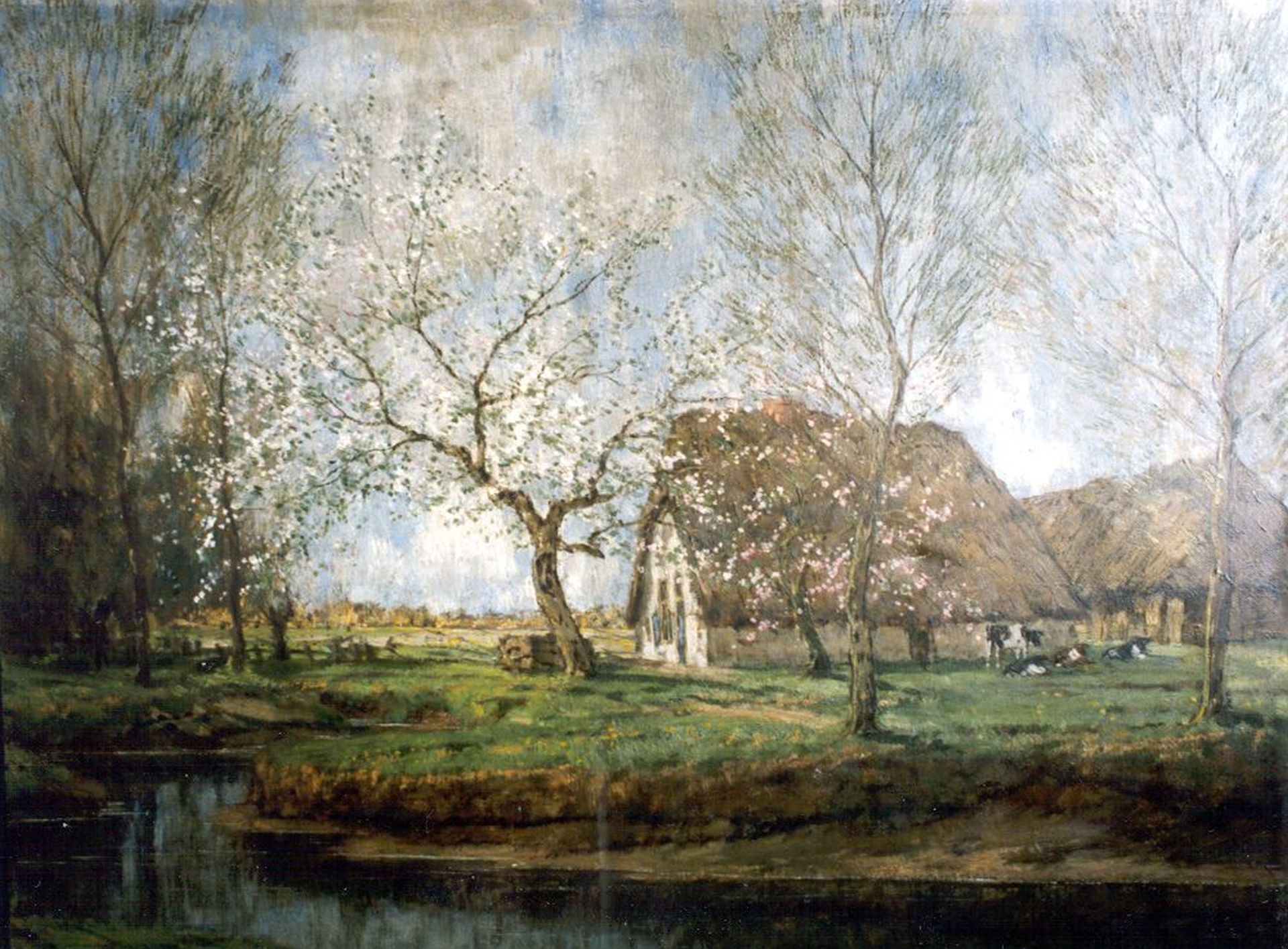 Arnold Marc Gorter Kunstwerk • Gemälde • zuvor zu verkaufen Blossoming orchard by a farm