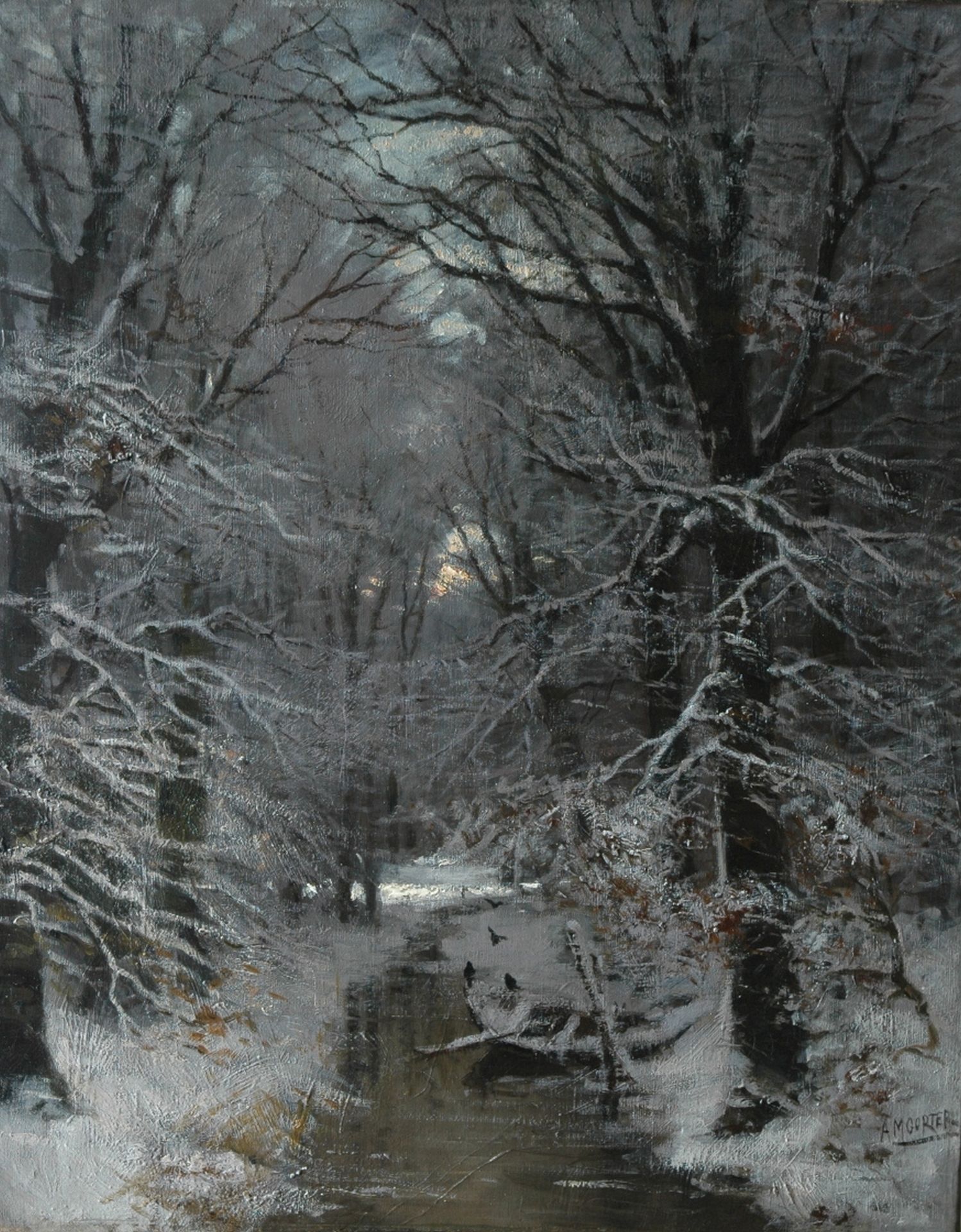 Arnold Marc Gorter Kunstwerk • Gemälde • zuvor zu verkaufen Forest stream in the snow