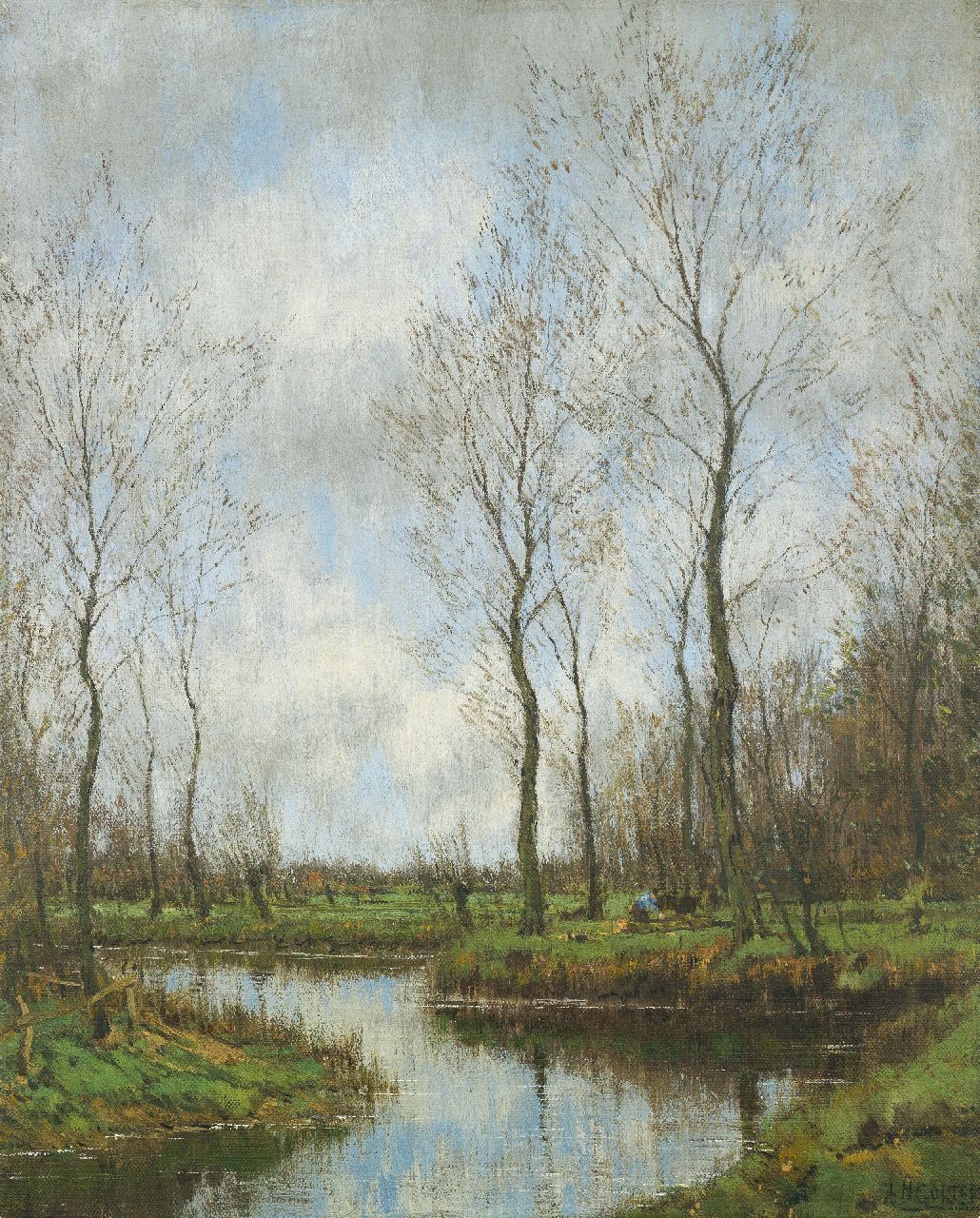 Arnold Marc Gorter Kunstwerk • Gemälde • zuvor zu verkaufen Holzfäller am Vordense Beek (Bach)