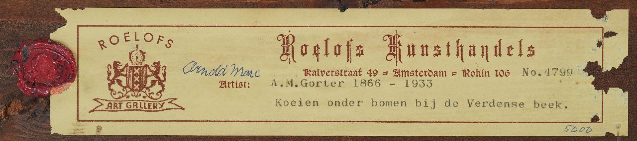 Arnold Marc Gorter Kunstwerk • Gemälde • zuvor zu verkaufen Kühe beim Vordense Beek