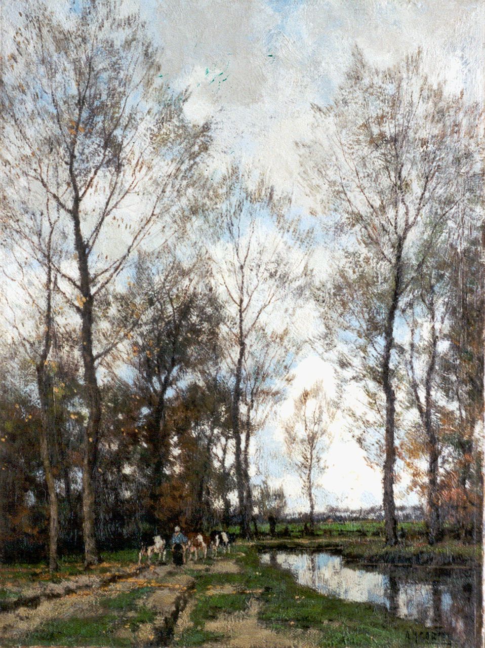 Arnold Marc Gorter Kunstwerk • Gemälde • zuvor zu verkaufen Shepherdess with cattle in an autumn landscape