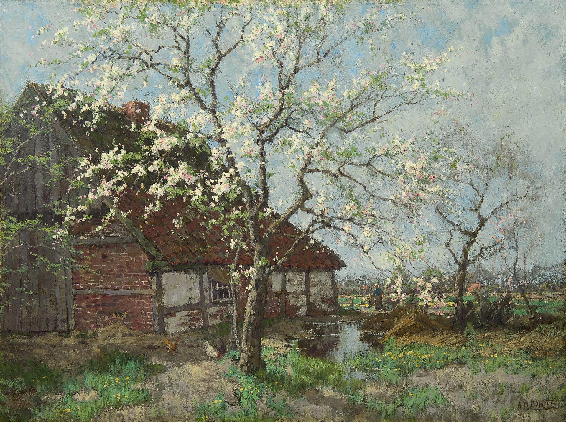 Arnold Marc Gorter | Blühender Apfelbäume bei einem Bauernhof, Öl auf Leinwand, 75,6 x 96,3 cm, Unterzeichnet u.r.