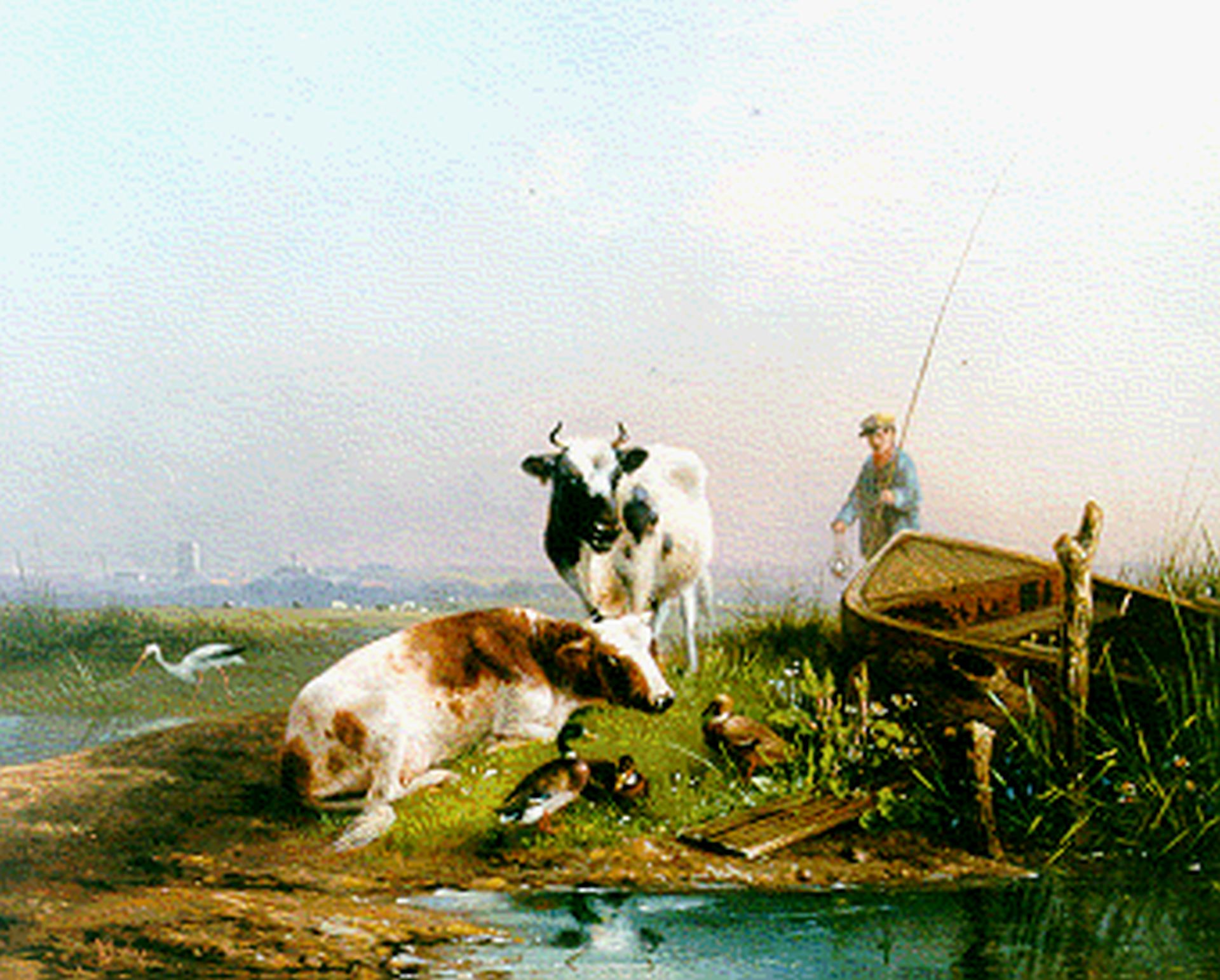 August Knip Kunstwerk • Gemälde • zuvor zu verkaufen Cows and ducks by a stream