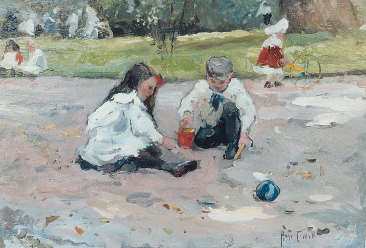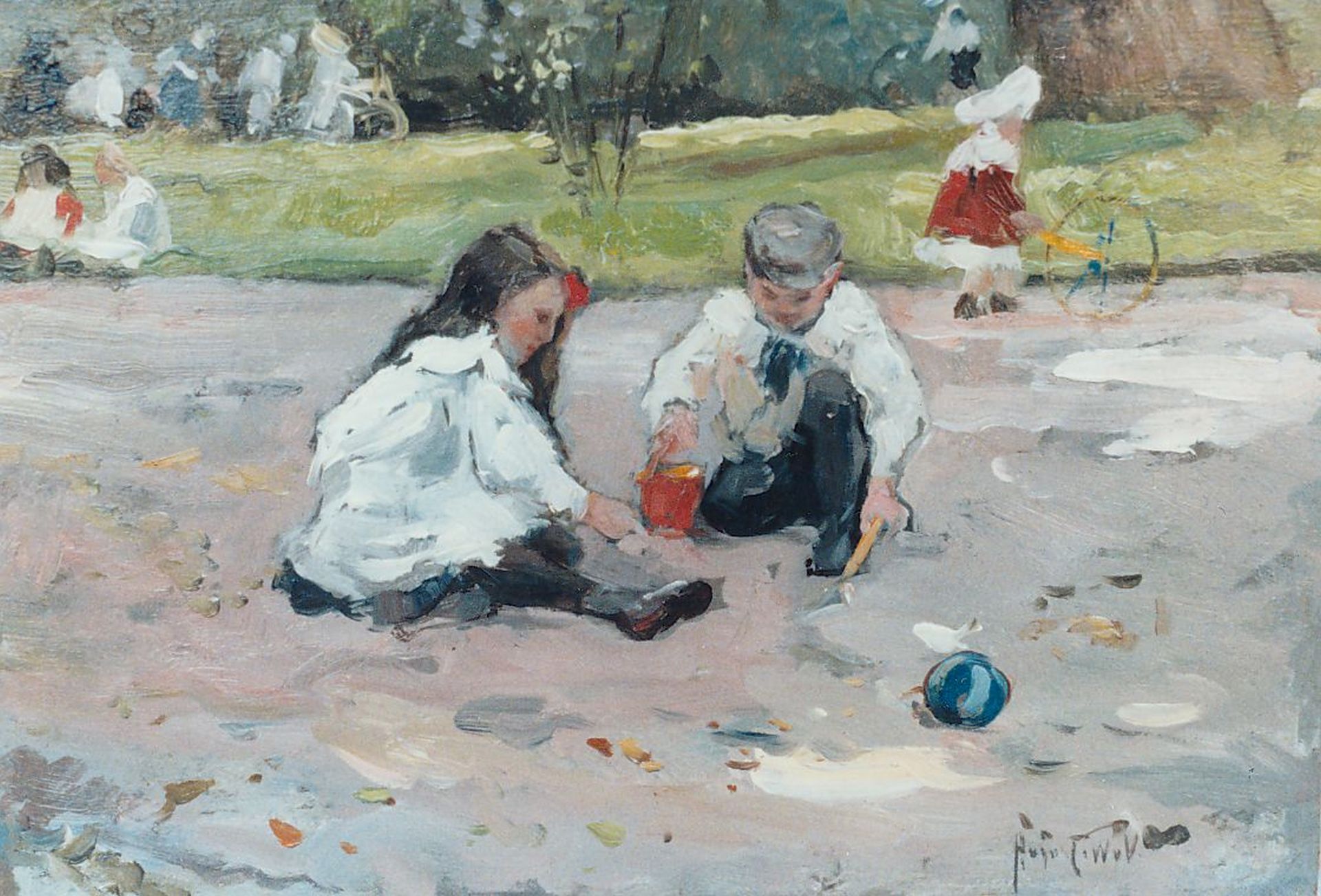 August van Voorden Kunstwerk • Gemälde • zuvor zu verkaufen Children playing in a parc