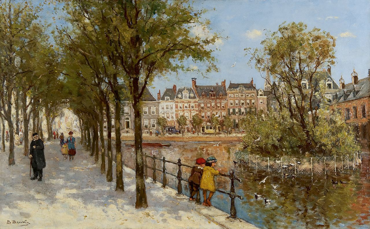 Barend Brouwer malte Stadtansichten und die niederländische Landschaft mit ihren Feldern, saftigen Wiesen, Seen und Wäldern. Als wahrer Impressionist wählte er Stimmung und Atmosphäre, tagsüber oder abends, im Sommer oder Winter. Brouwer war bereits Schüler von Theophile de Bock in Diepenveen. Anschließend besuchte er die Akademien von Antwerpen und Den Haag. Ab 1923 lebte er in Voorburg. Manchmal ähneln seine Waldszenen dem Werk von De Bock so sehr, dass Dutzende seiner Gemälde der B. Brouwer-Signatur entzogen und mit dem Namen Th gefälscht wurden. der Bock.