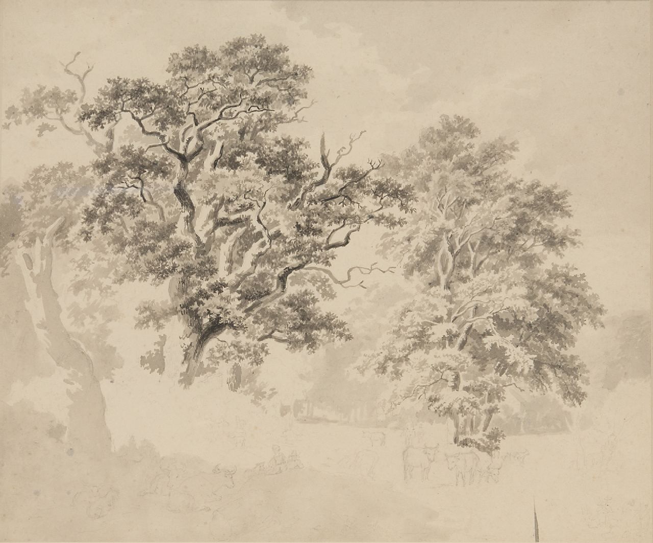 Barend Cornelis Koekkoek Kunstwerk • Aquarell • Zeichnung • zuvor zu verkaufen Baumstudie