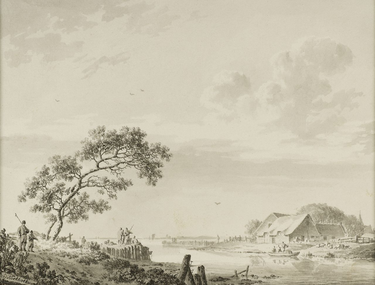 Barend Cornelis Koekkoek Kunstwerk • Aquarell • Zeichnung • zuvor zu verkaufen Flusslandschaft in Zeeland