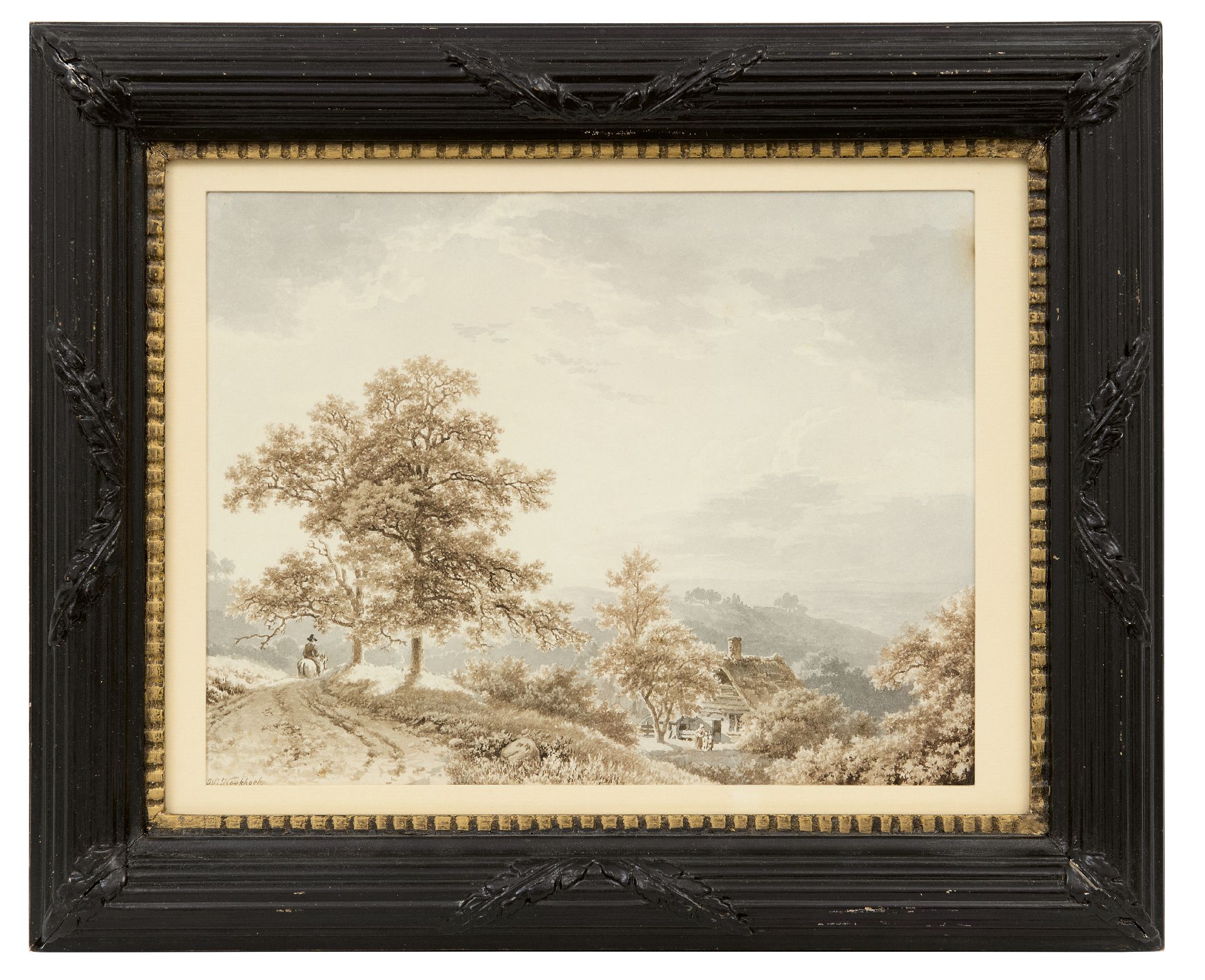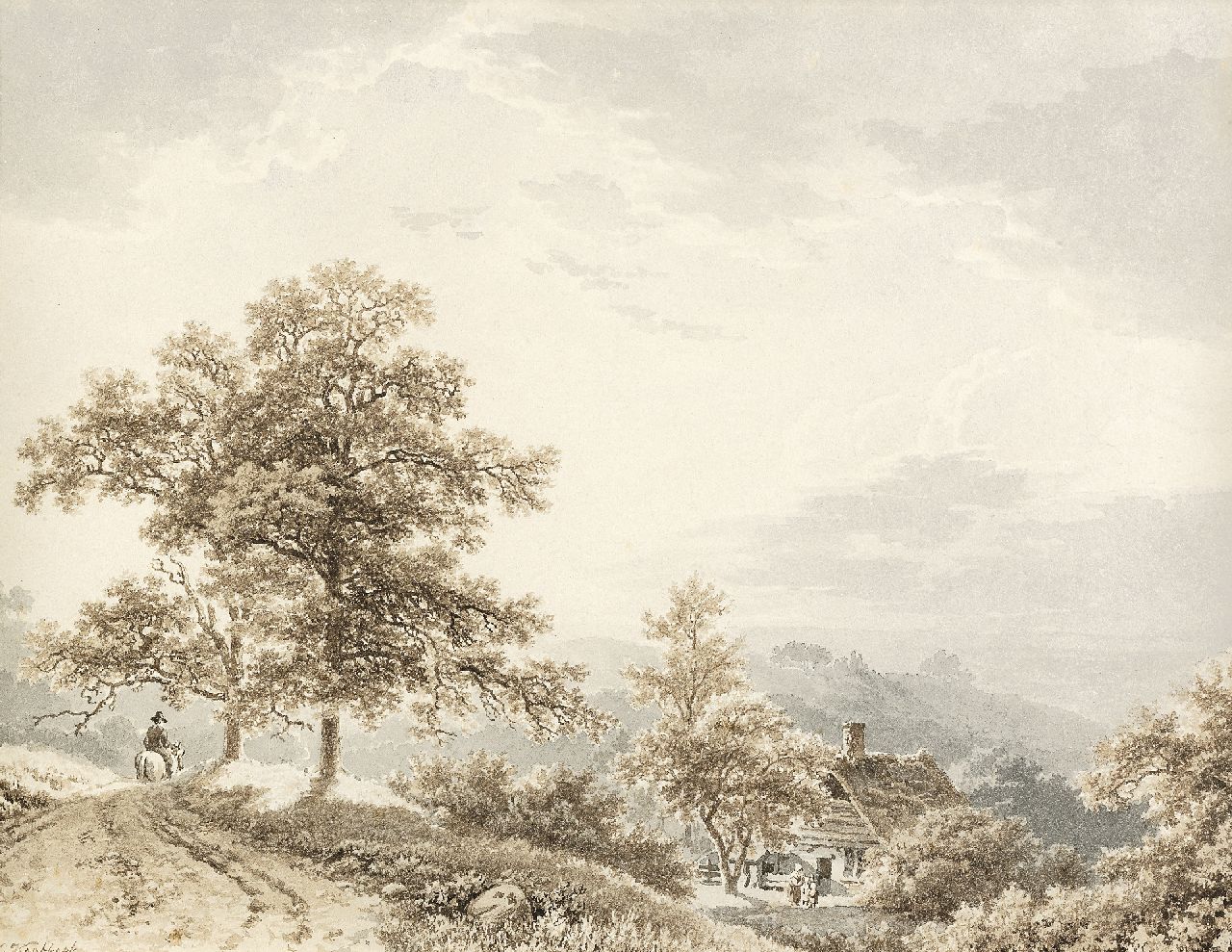 Barend Cornelis Koekkoek Kunstwerk • Aquarell • Zeichnung • zuvor zu verkaufen Reisender Reiter in Hügellandschaft