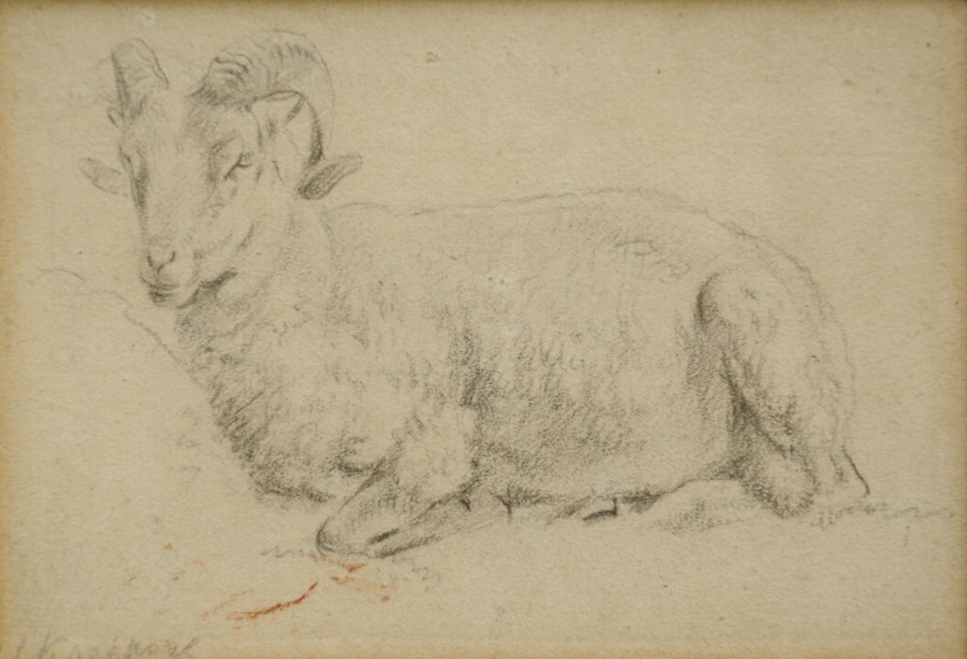 Barend Cornelis Koekkoek Kunstwerk • Aquarell • Zeichnung • zuvor zu verkaufen Studium von einem Widder