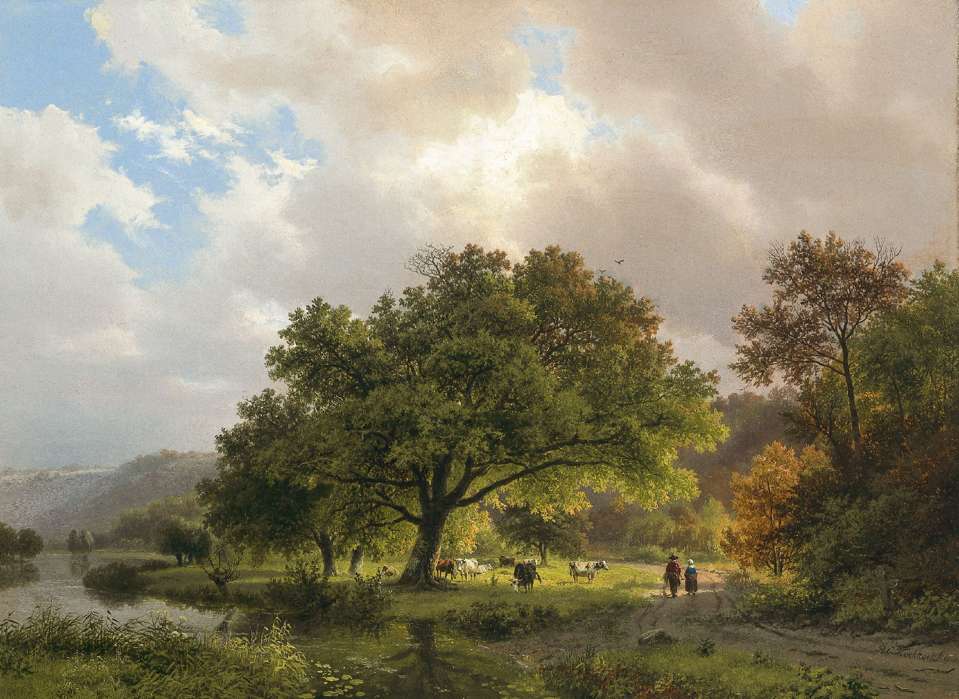 Barend Cornelis Koekkoek Kunstwerk • Gemälde • zuvor zu verkaufen Alte Eiche entlang 'Het Meertje' bei Beek bei Nijwegen