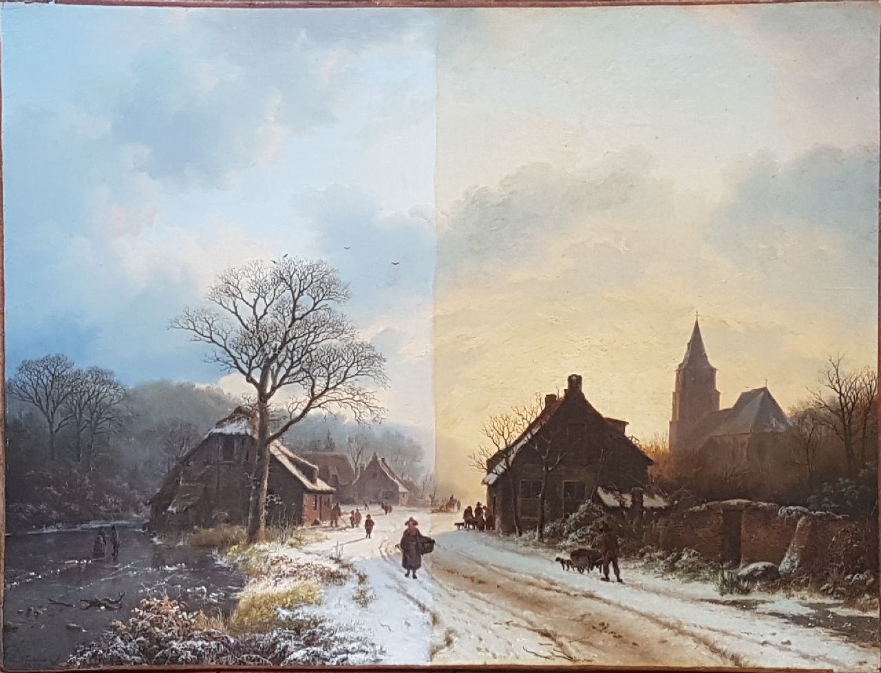Barend Cornelis Koekkoek Kunstwerk • Gemälde • zu verkaufen Niederrheinische Winterlandschaft mit einer von Aerdt inspirierten Kirche