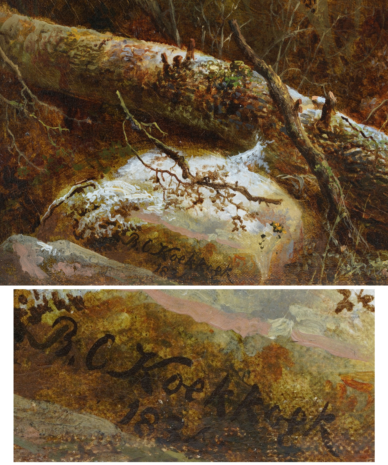 Barend Cornelis Koekkoek, der berühmteste romantische Landschaftsmaler der Niederlande, war Schüler seines VatersJ.H.Koekkoek under Akademien In Middelburg und Amsterdam. Er wohnte und arbeitete an vielen Orten wo Naturschönheit reichlich vorhanden war: Die Landschaft Gooi, in der Umgebung von Amsterdam, die Gegend rund Arnheim und das Rijk van Nijmegen. Im Jahre 1843 liess er sich nieder in dem deutschen Städtchen Kleve, wo er gleichzeitig eine ‘’Teekenakademie” gründete. Von Kleve aus unternahm er eine Anzahl von Reisen durch die belgischen Ardennen, am Rhein entlang nach dem Harz und Sachsen.