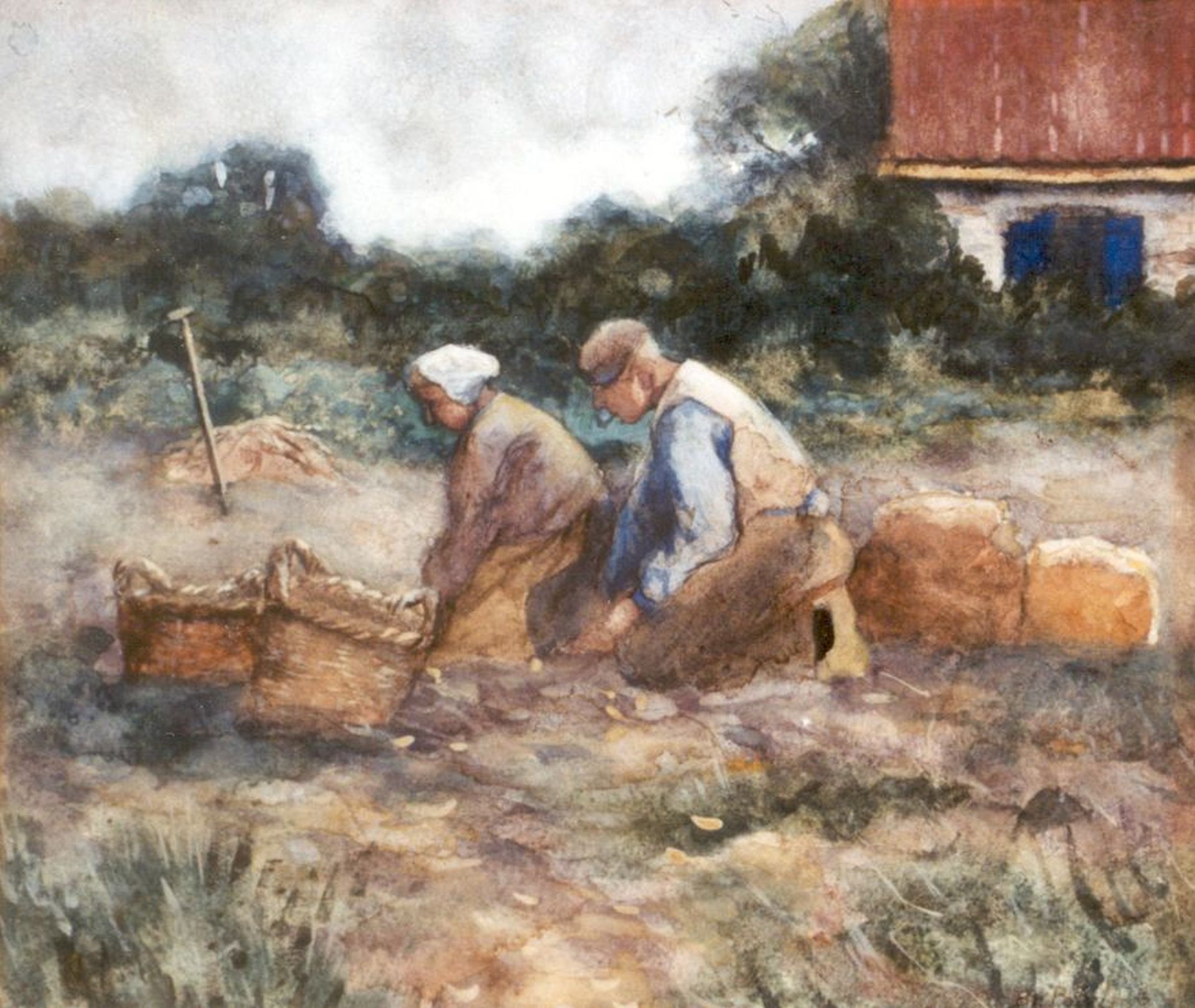 Barend Polvliet Kunstwerk • Aquarell • Zeichnung • zuvor zu verkaufen Digging up potatoes
