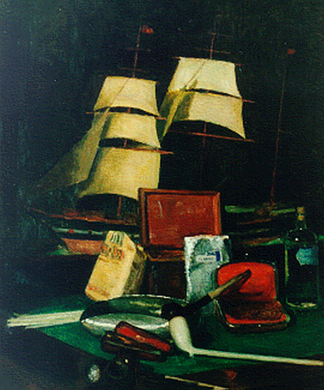 Bart Peizel Kunstwerk • Gemälde • zuvor zu verkaufen Still life with model ship