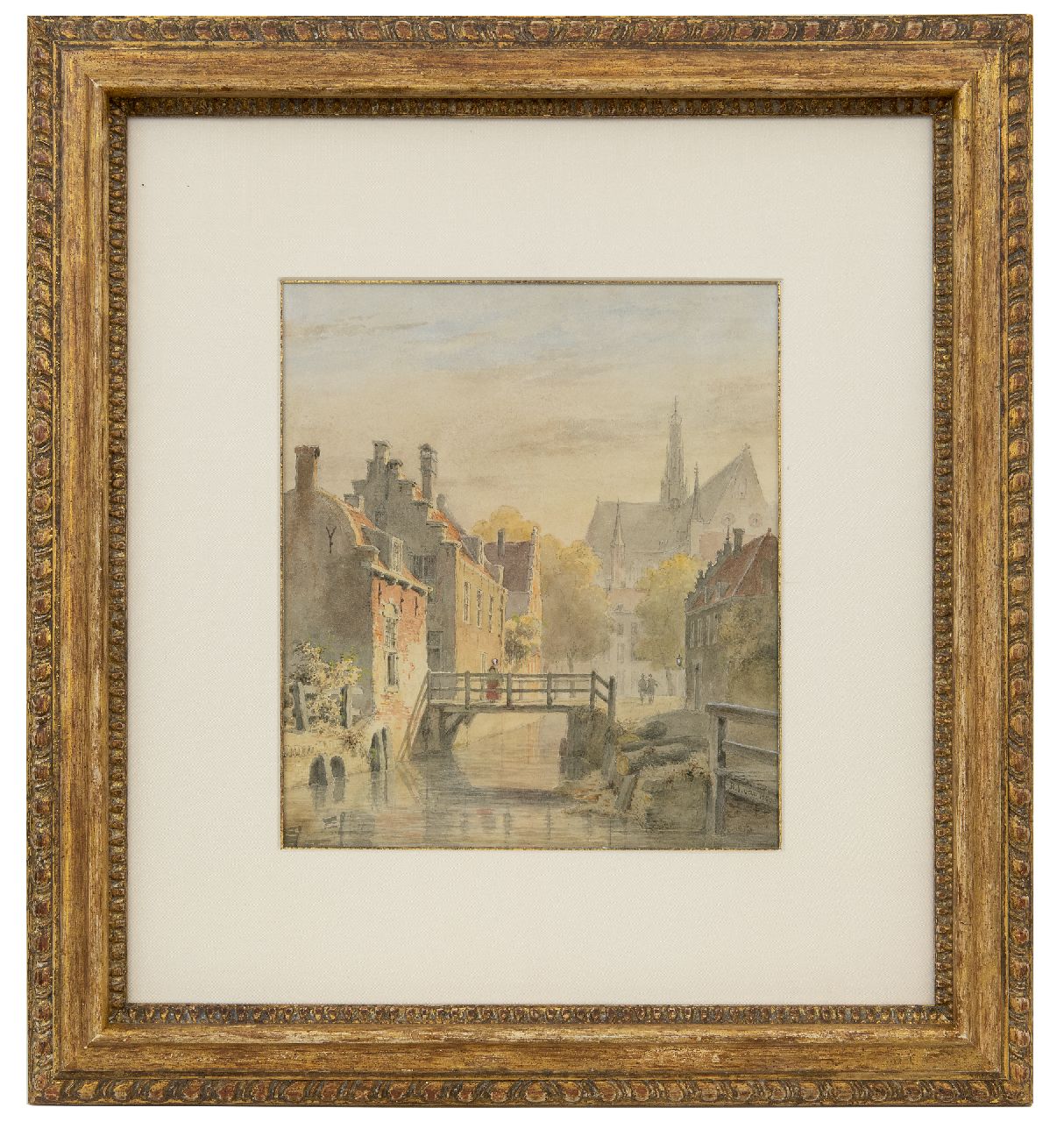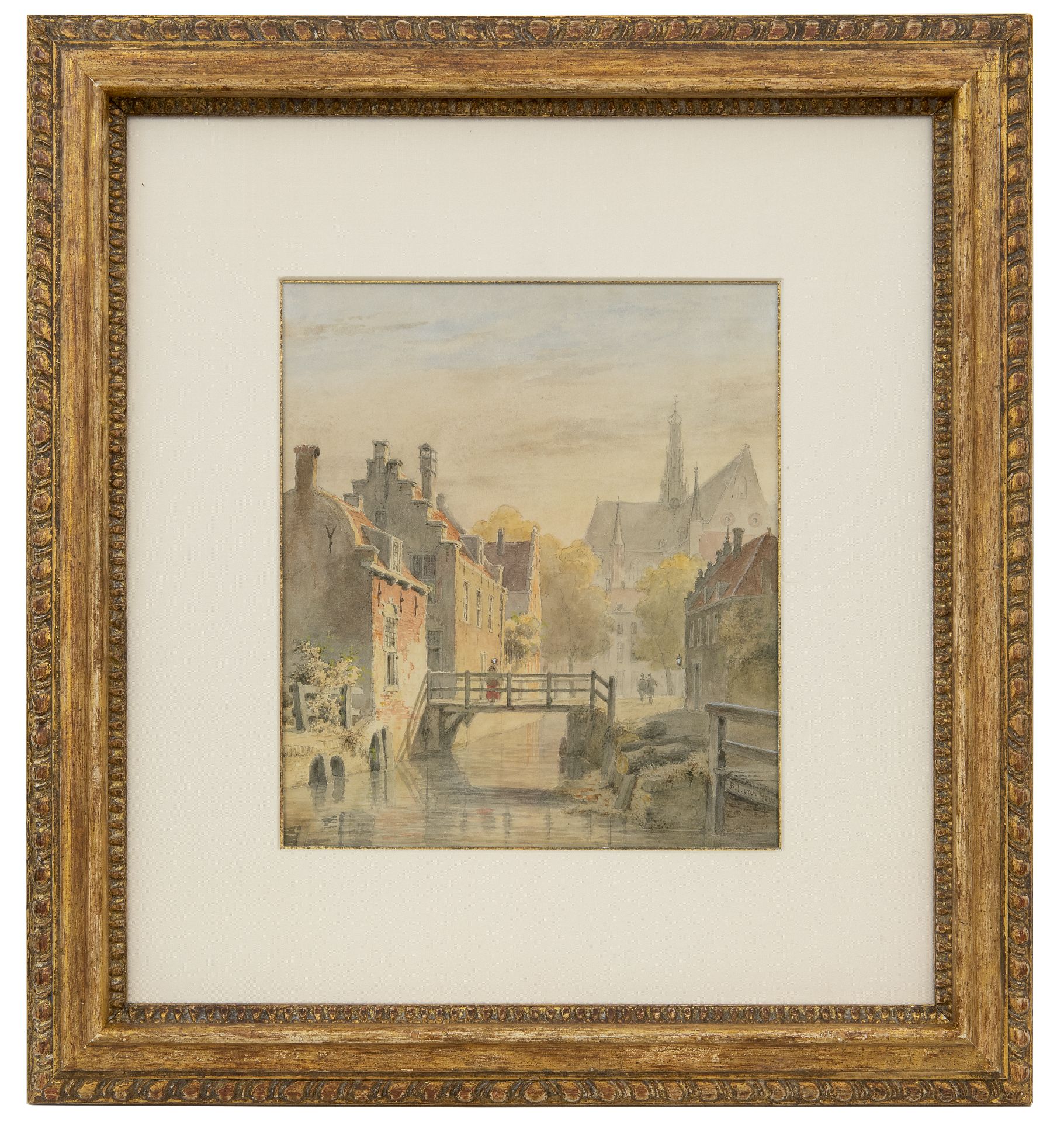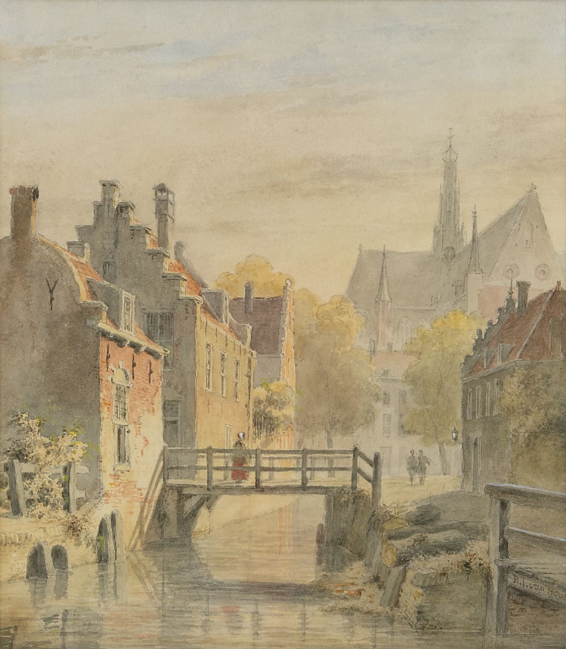 Bart van Hove Kunstwerk • Aquarell • Zeichnung • zuvor zu verkaufen Stadtblick von Haarlem mit der St. Bavokirche
