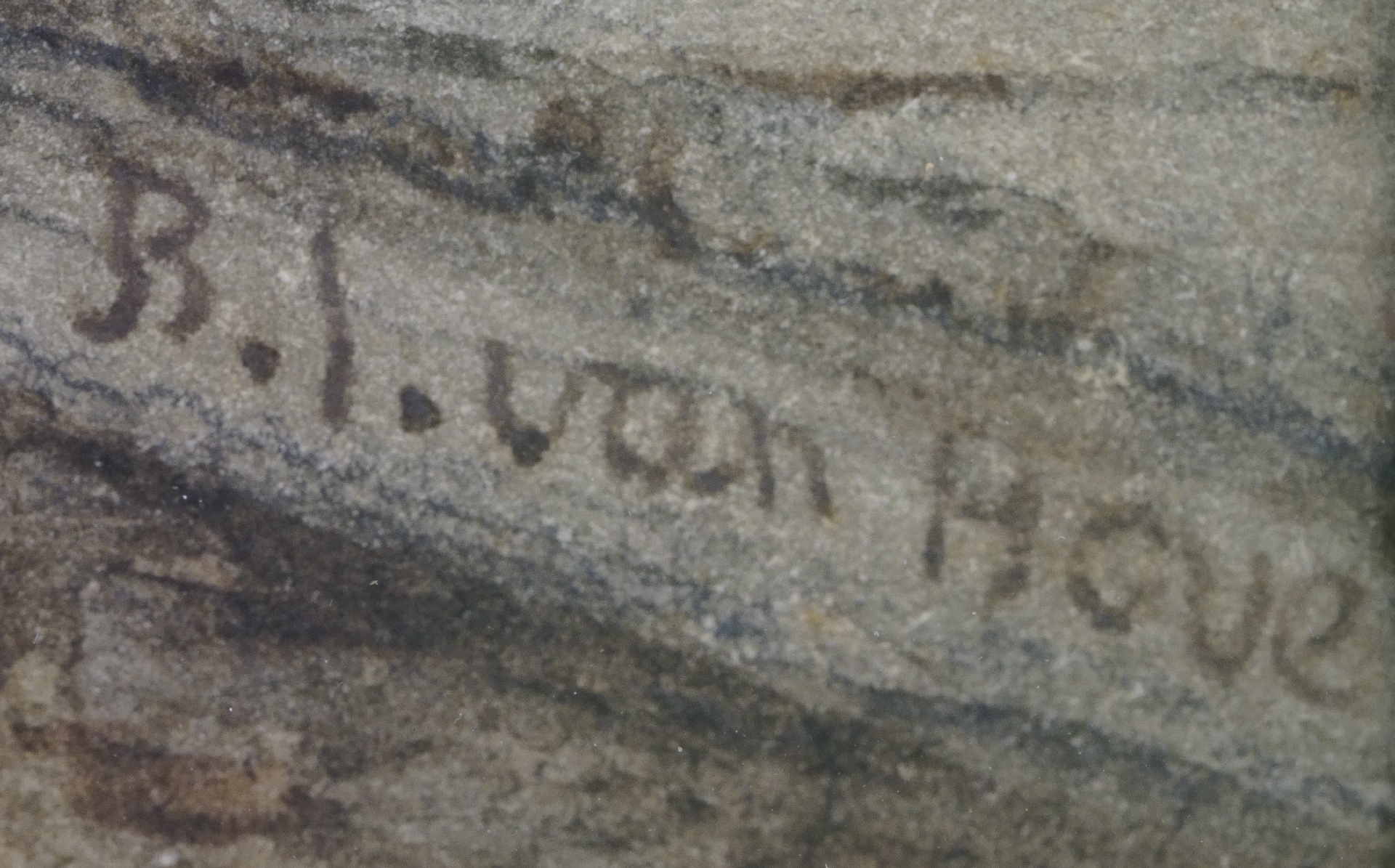 B.J.van Hove war ein Schüler des Haager Dekorationsmalers J.H.A.A. Breckenheijmer. Nachher war er Student an der Haager Tekenakademie. Er war zu seiner Zeit schon ein wichtiger Maler von romantischen Stadtansichten, in denen Phantasie eine grosse Rolle spielte. Ausserdem arbeitete er als Theater- und Dekormaler und wurde 1828 Dekorateur der Koninklijke Nederlandsche Schouwburg im Haag. Van Hove spielte eine wichtige Rolle in der Entwicklung der Malerei des 19. Jahrhunderts mittels seine vielen Schüler, unter denen J.Bosboom, S.Verveer und H.J.Weissenbruch.