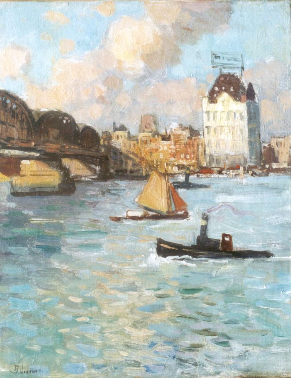 Ben Viegers Kunstwerk • Gemälde • zuvor zu verkaufen A view of the river Maas with the Witte Huis in the distance, Rotterdam