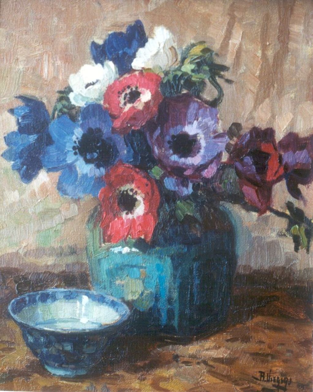 Viegers B.P.  | Bernardus Petrus 'Ben' Viegers, Anemones in a ginger jar, Öl auf Leinwand 30,5 x 24,5 cm, signed l.r.