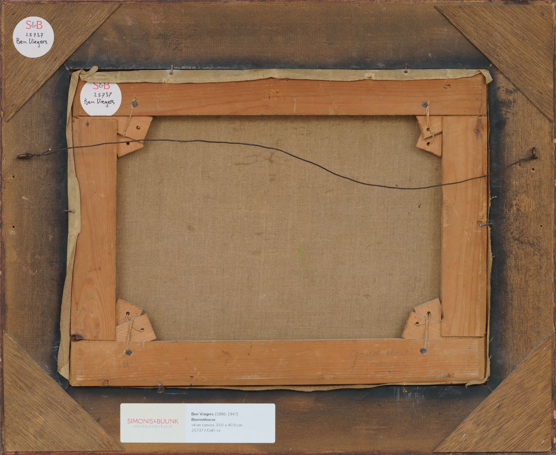 Ben Viegers war anfangs stark von der Haager Schule als Maler beeinflusst. Allmählich wichen jedoch seine Grautöne einem mediterranen Kolorit und klarem Licht. Dies wurde durch eine kurze, impressionistische Note noch verstärkt, die zusammen mit leuchtenden Farben wie Kobaltblau, Orange und Seegrün zu seinem Markenzeichen wurde. Wie so viele Zeitgenossen malt Viegers regelmäßig in der Veluwe. Er lebte auch lange in Nunspeet, wo die Landschaft und die bäuerliche Bevölkerung eine ständige Inspirationsquelle für ihn waren.