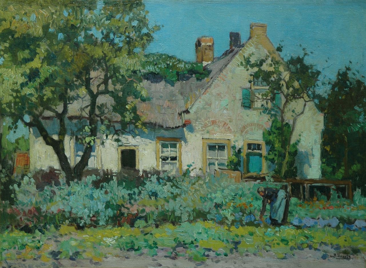 Ben Viegers war anfangs stark von der Haager Schule als Maler beeinflusst. Allmählich wichen jedoch seine Grautöne einem mediterranen Kolorit und klarem Licht. Dies wurde durch eine kurze, impressionistische Note noch verstärkt, die zusammen mit leuchtenden Farben wie Kobaltblau, Orange und Seegrün zu seinem Markenzeichen wurde. Wie so viele Zeitgenossen malt Viegers regelmäßig in der Veluwe. Er lebte auch lange in Nunspeet, wo die Landschaft und die bäuerliche Bevölkerung eine ständige Inspirationsquelle für ihn waren.