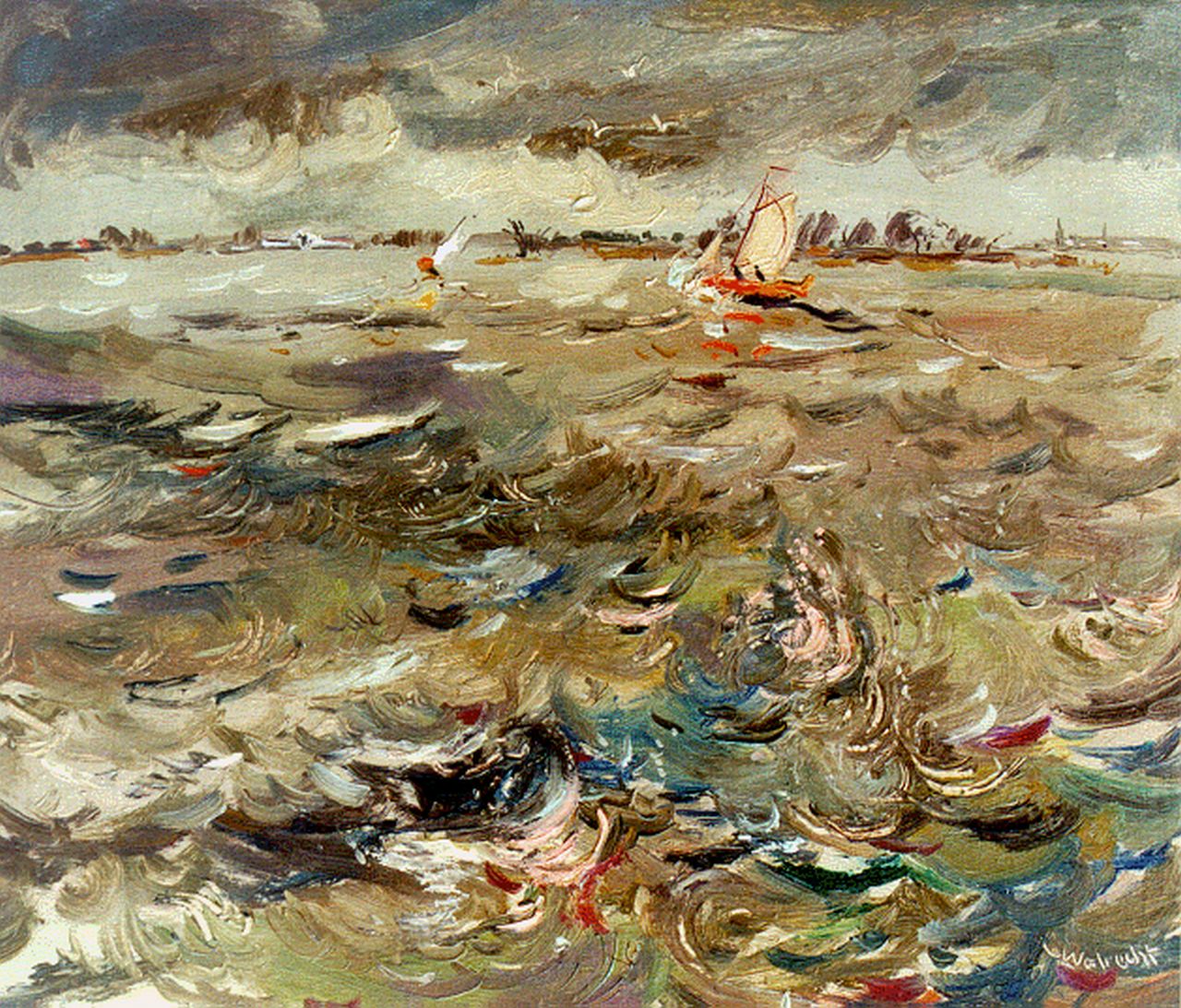 Ben Walrecht ist einer der Maler, die sich in den 1930er Jahren dem Groninger Ploeg angeschlossen haben. Er war ursprünglich Werbedesigner und widmete sich auch der Malerei von Stadtlandschaften, Porträts und Landschaften in Groningen. Seine Motive, sein geschmeidiger Impressionismus und seine freie Verwendung von Farben stimmten mit denen der Ploeg-Mitglieder überein, und 1936 wurde er Mitglied dieser Künstlergruppe. Walrechts Leidenschaft für Wasser führte zum Kauf eines Schiffes, auf dem er sich schließlich niederließ und mit dem er im Sommer mit Martens und Dijkstra durch Friesland segelte.