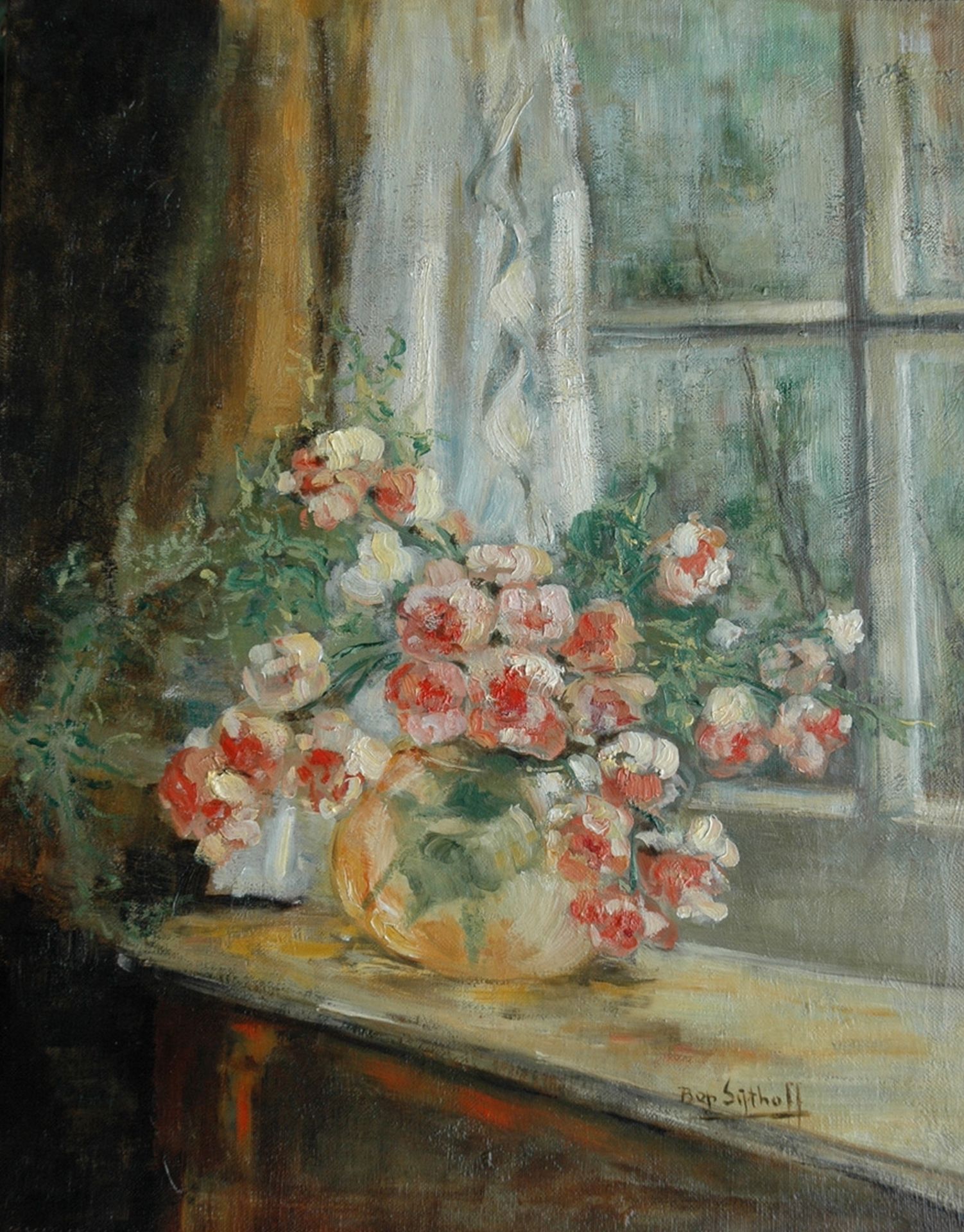 Bep Sijthoff Kunstwerk • Gemälde • zuvor zu verkaufen Summerflowers on the windowsill